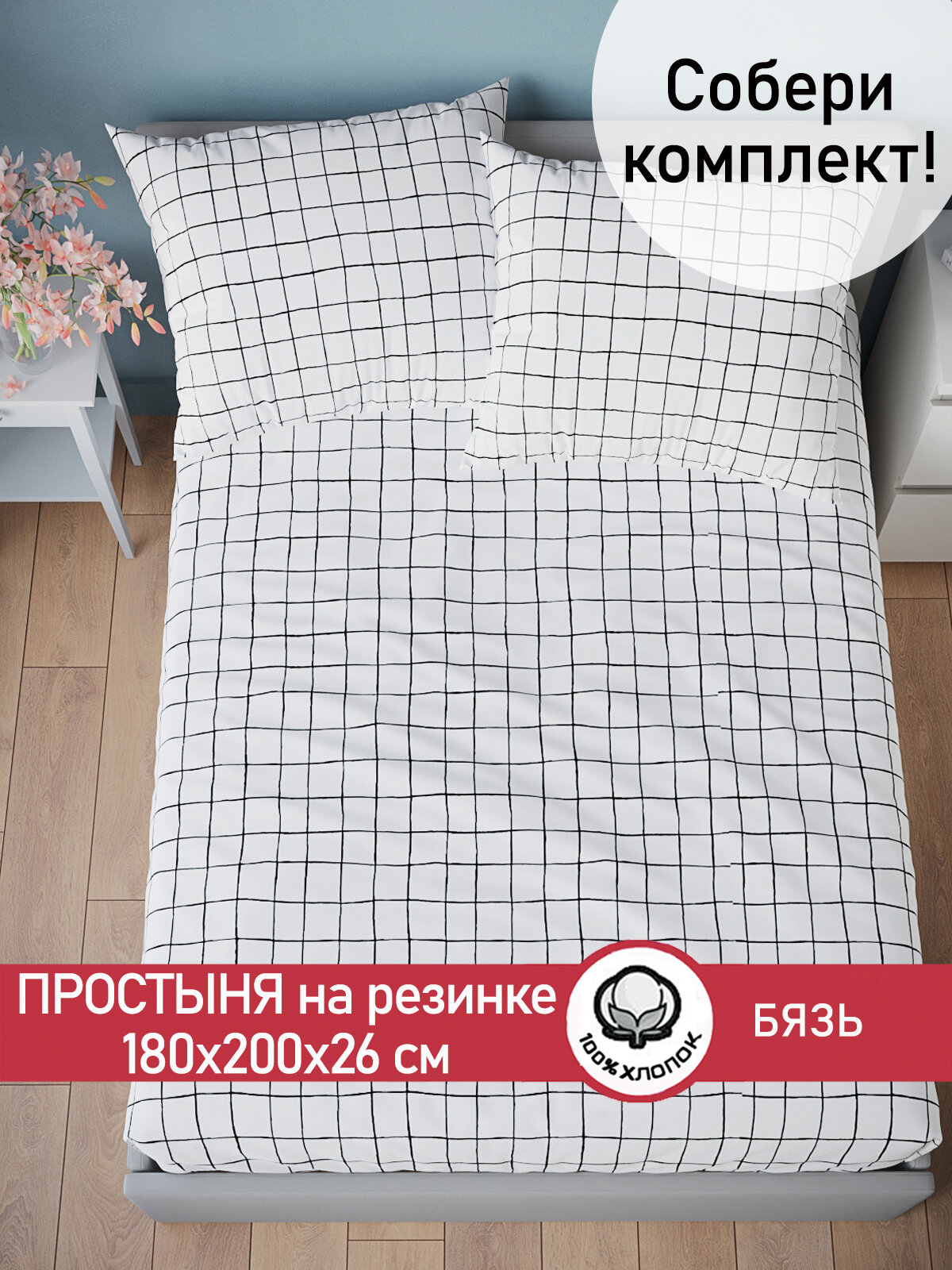 СохранитьПростынь на резинке Сказка "Торино" 180х200 см, ткань бязь, 100% хлопок, высота 26 см интересное: