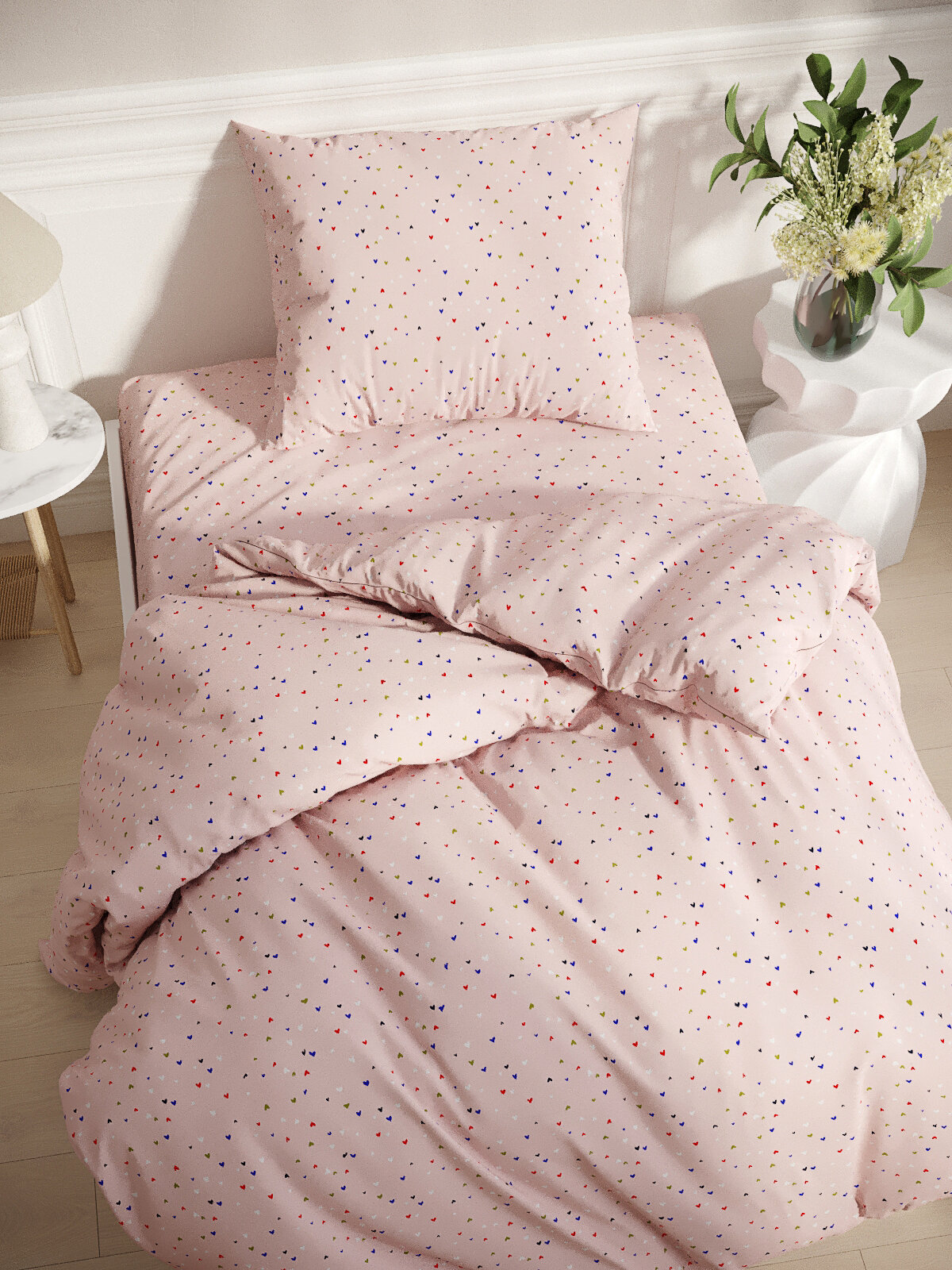Простынь на резинке Сказка "Сердечки" 120х200 см, ткань перкаль, 100% хлопок, высота 26 см