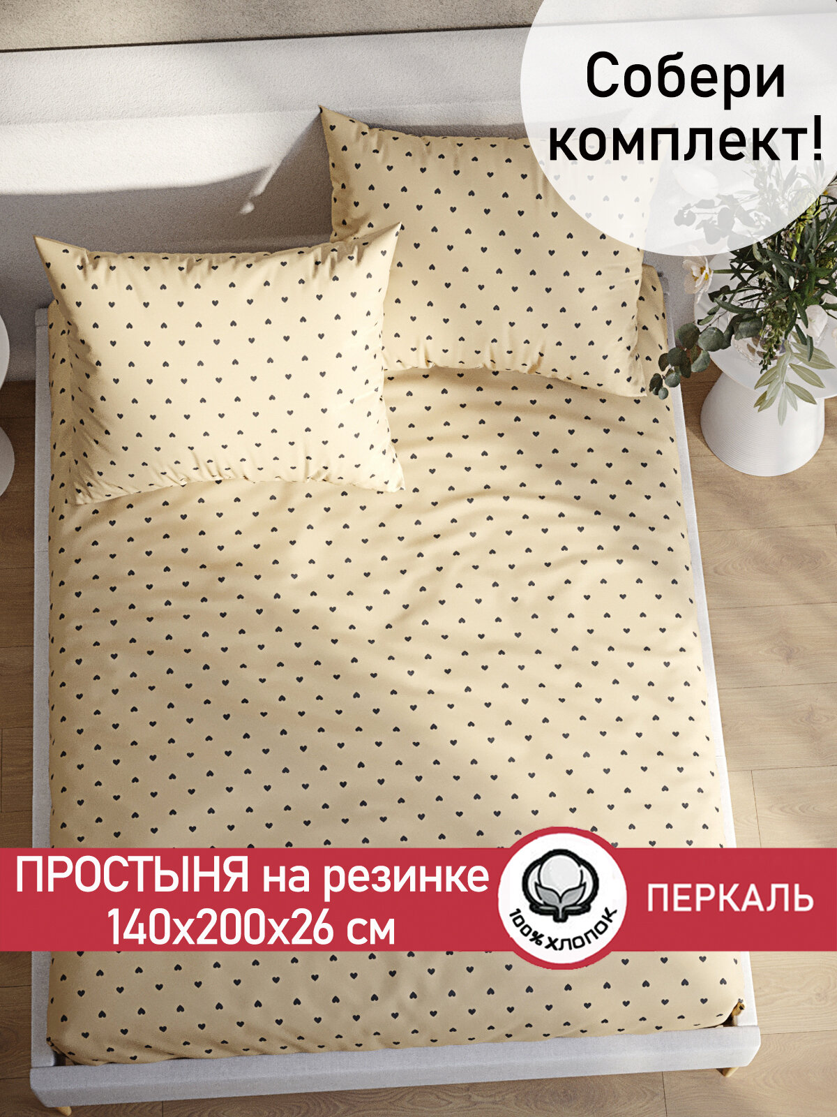 Простынь на резинке Сказка "Адель" 140х200 см, ткань перкаль, 100% хлопок, высота 26 см интересное: