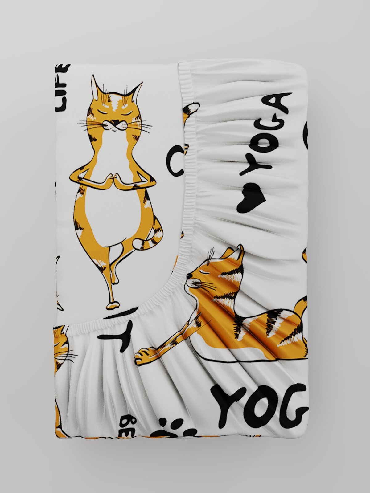 Простынь на резинке Сказка "Yogacat" 120х200 см, ткань бязь, 100% хлопок, высота 26 см
