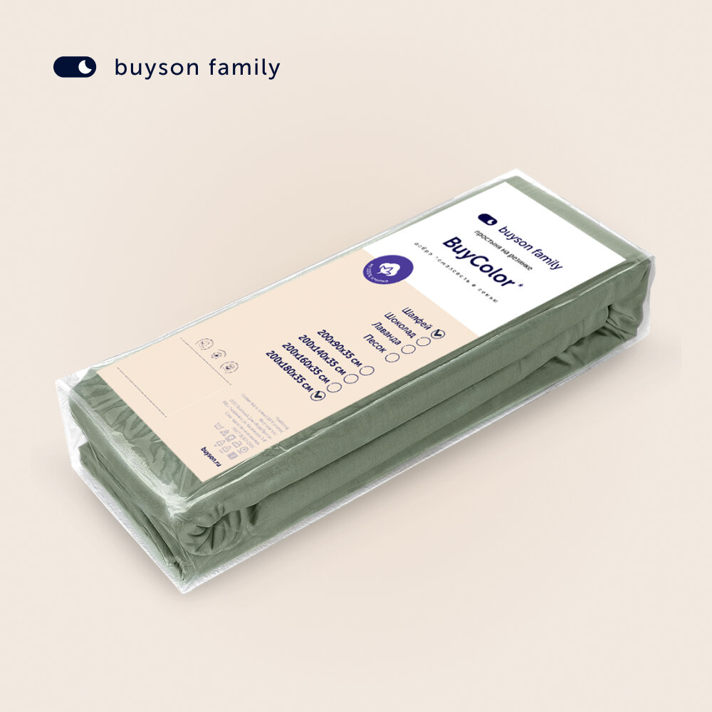СохранитьПростыня на резинке buyson family BuyColor 180х200х35 см, хлопок (сатин), Шалфей интересное: