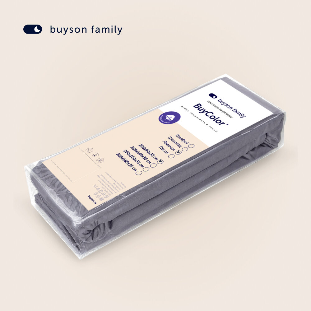 Простыня на резинке buyson family BuyColor 180х200х35 см, хлопок (сатин). Песок