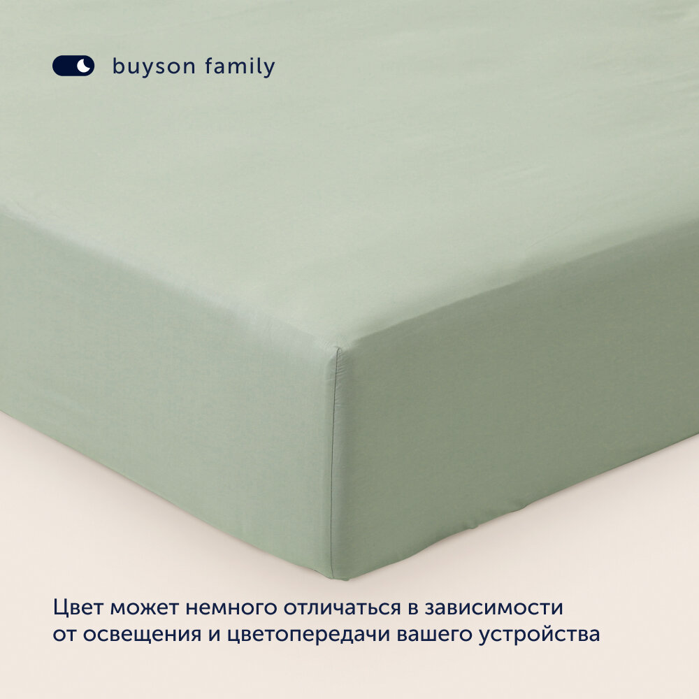 Простыня на резинке buyson family BuyColor 180х200х35 см, хлопок (сатин), Шалфей
