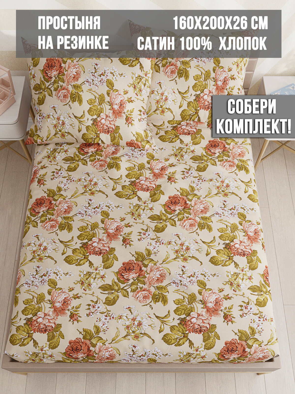 Купить Простынь Milky Garden "Винтаж" 160х200 см 2-спальная, на резинке, сатин, хлопок 100%