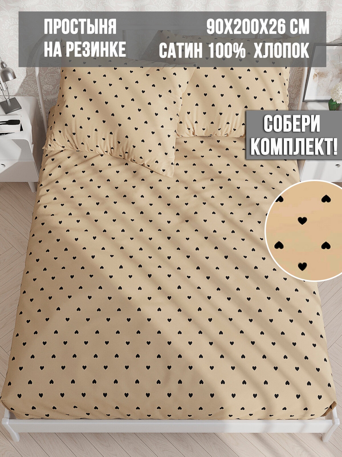 Простынь на резинке натяжная Ambesonne, 90х200 Микросатин аналог икеа