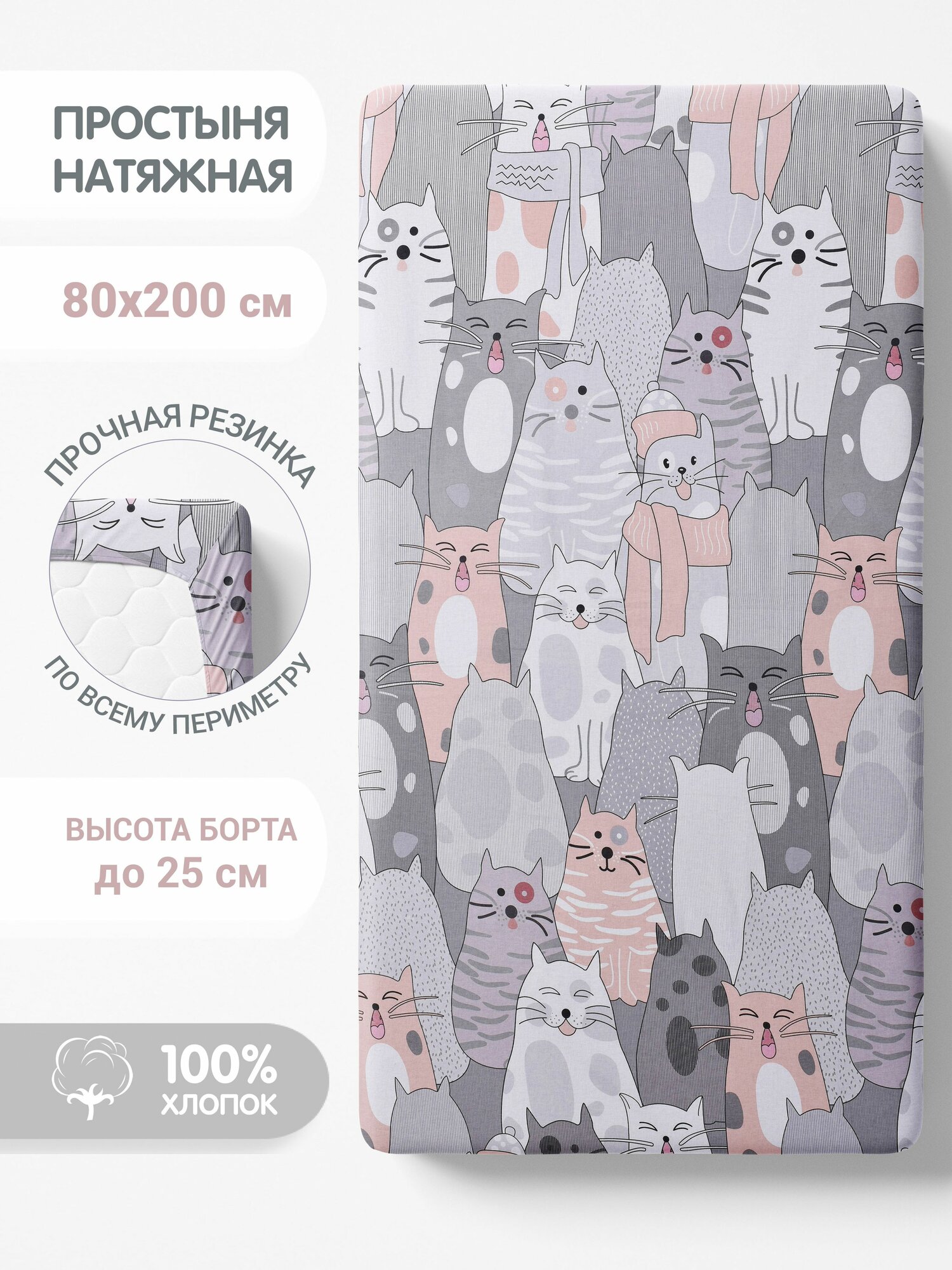 Простынь 80х200х25 детская на резинке односпальная 100% хлопок перкаль интересное: