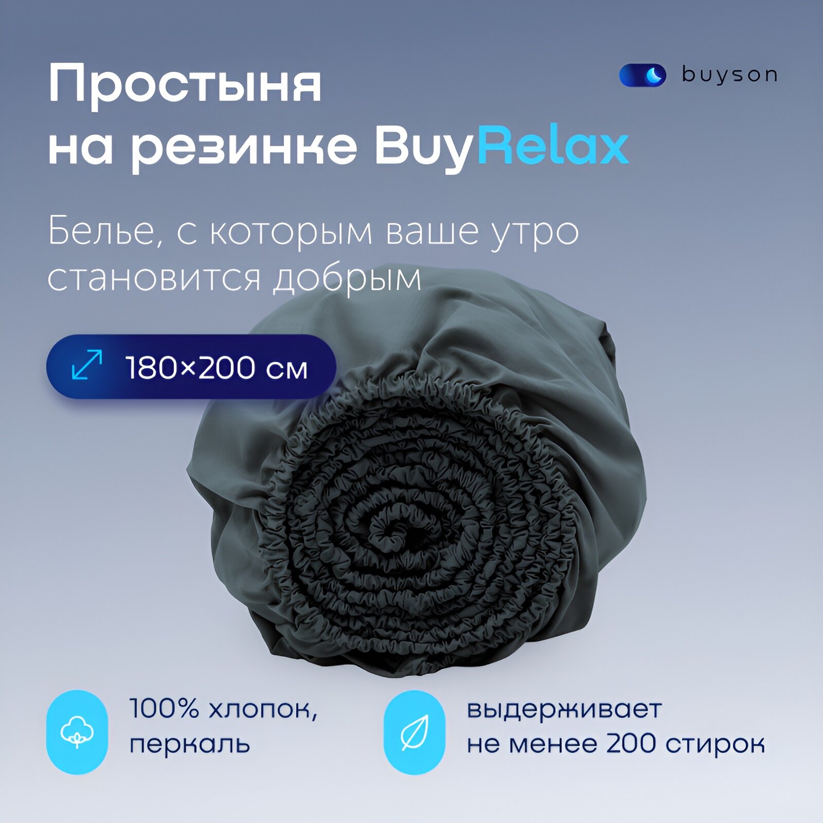 Простыня на резинке BuyRelax 180х200 см, хлопок (перкаль) графит