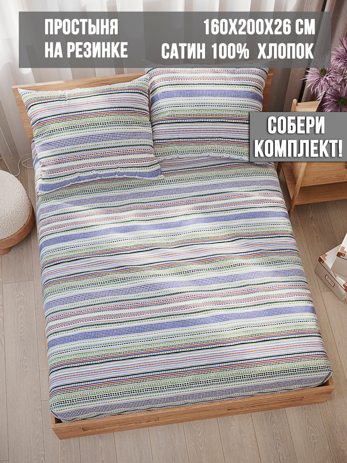 Простынь Milky Garden "Бисер (компаньон)" евро 180х200 см, на резинке, сатин, хлопок 100%