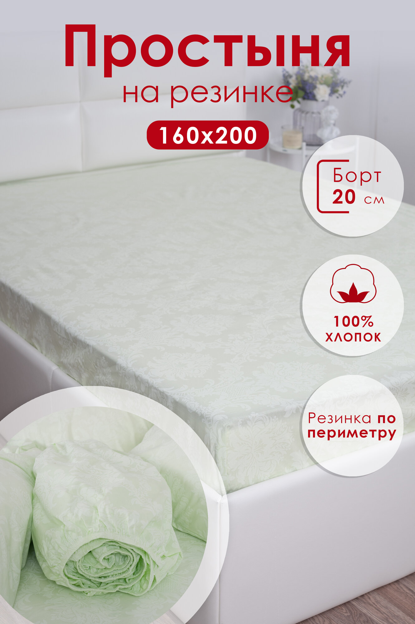 Простынь на резинке 160х200 см Миланика Изумруд поплин, 100% хлопок
