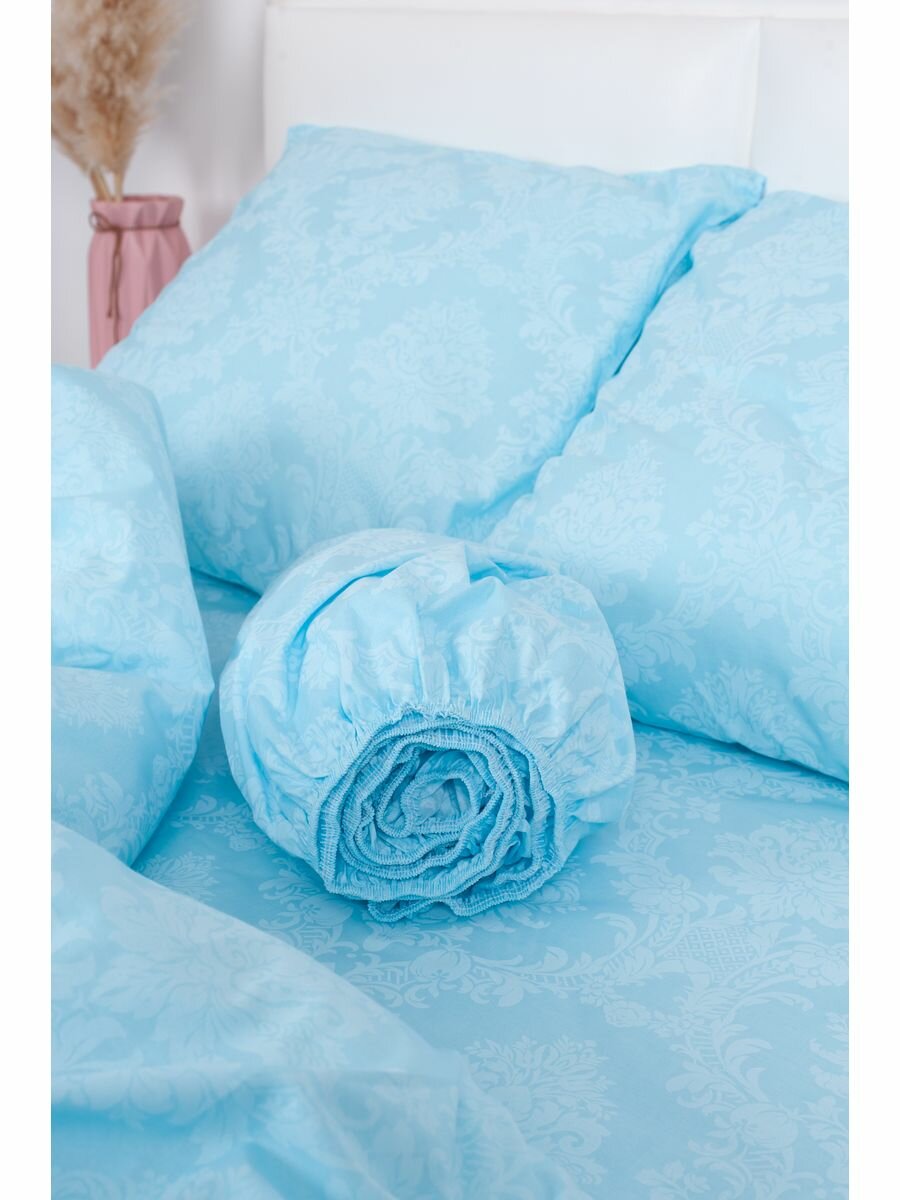 Простынь на резинке 160х200 см Миланика Бирюза поплин, 100% хлопок
