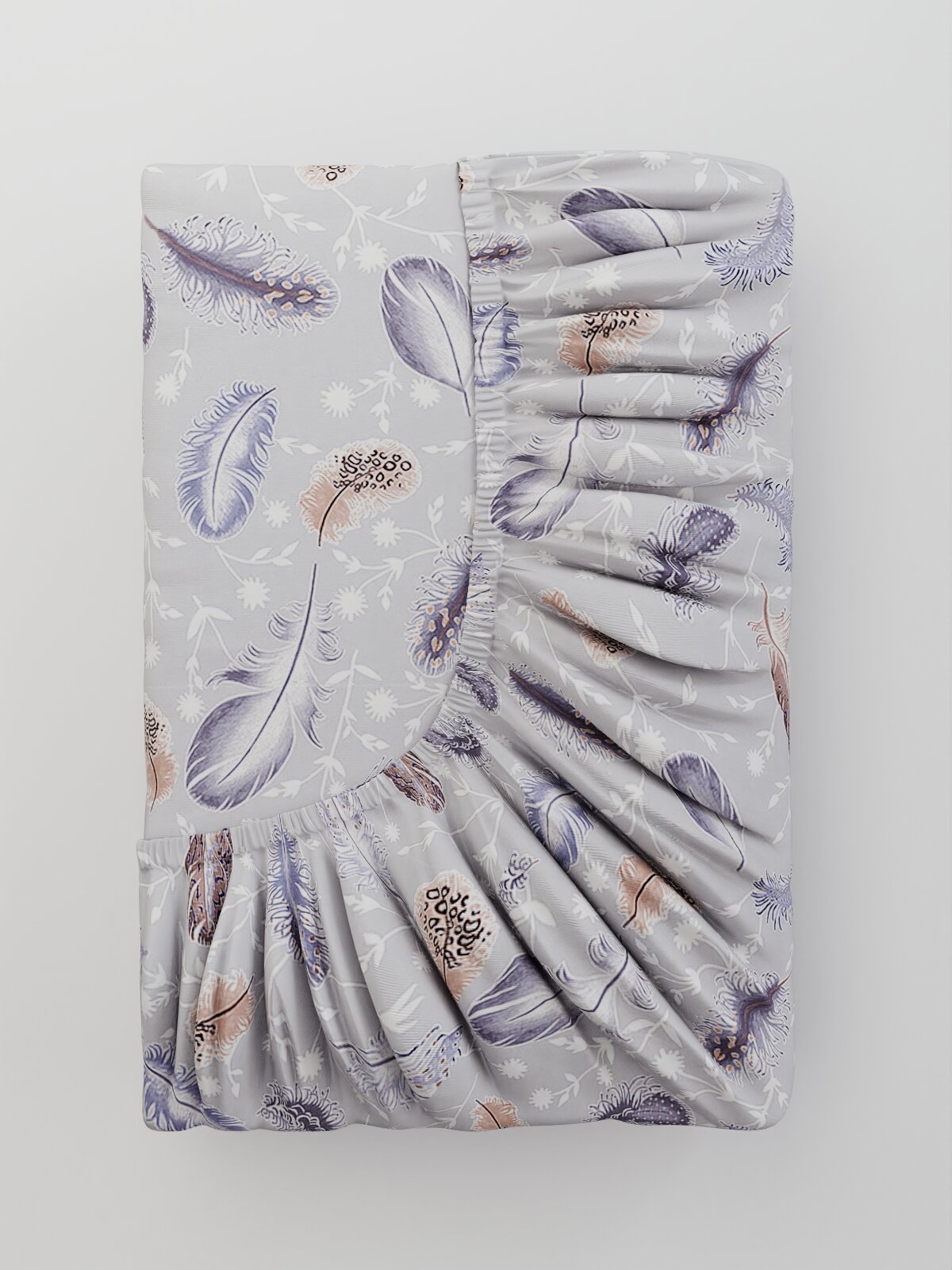 Купить Простынь Milky Garden "Перья" 120х200 см 1.5-спальная, на резинке, сатин, хлопок 100%