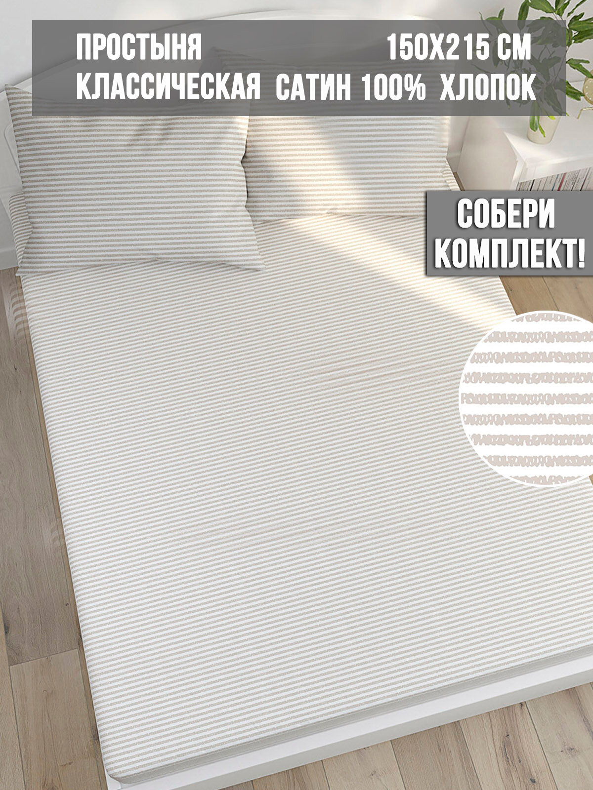 Простынь Milky Garden "Lester" 150х215 см 1.5-спальная, классическая, сатин, хлопок 100% интересное: