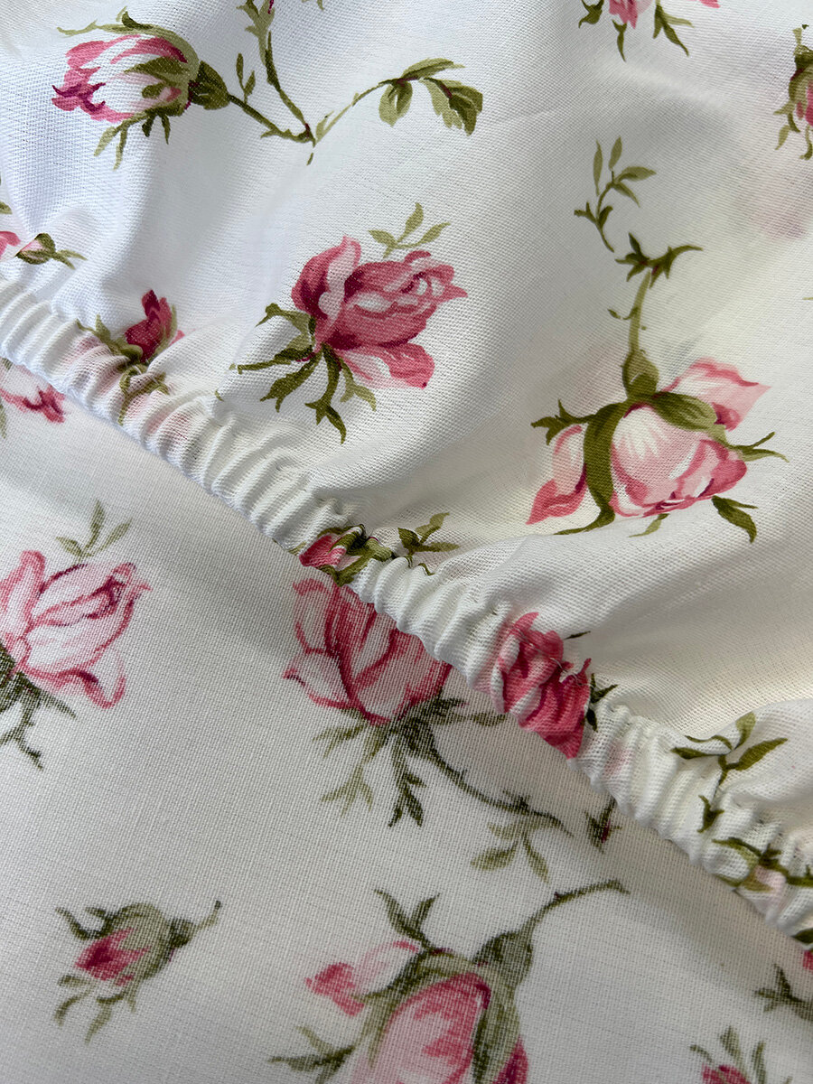 Простынь на резинке Сказка Сатин "Розы" 90х200 см, ткань сатин, 100% хлопок, высота 26 см