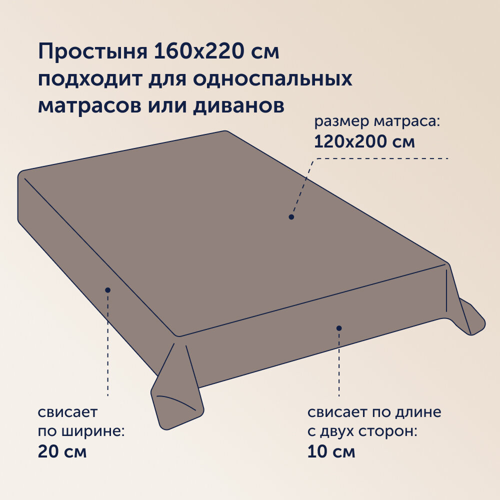 Простыня buyson family BuyColor 160х220 см, хлопок (сатин) Песок