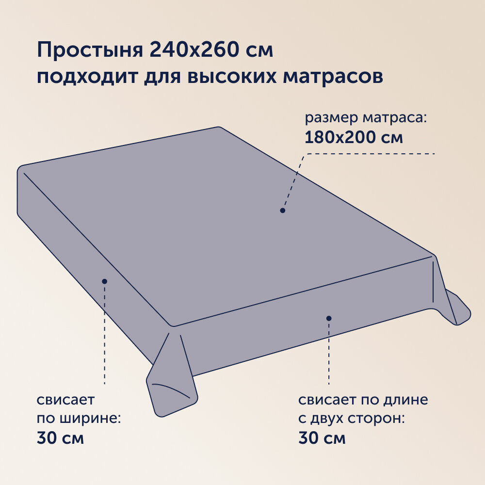 Простыня buyson family BuyColor евро 240х260 см, хлопок (сатин) Песок
