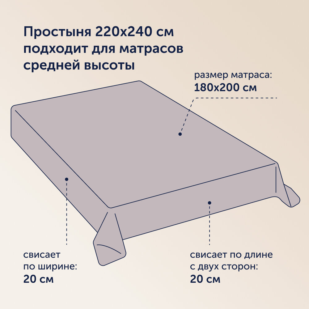 Простыня buyson family BuyColor евро 220х240 см, хлопок (сатин) Лаванда