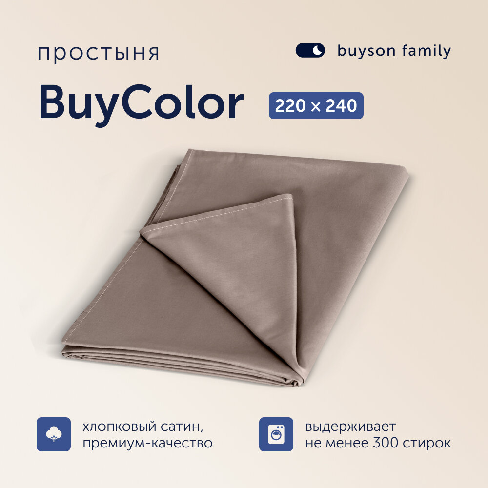 Простыня buyson family BuyColor евро 220х240 см, хлопок (сатин) Песок