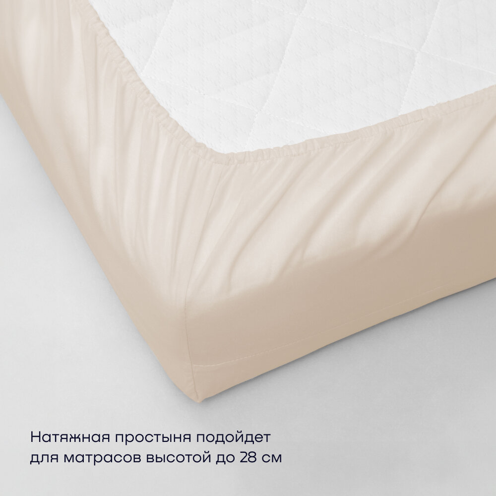Простыня на резинке BuyLive 140х200 см, хлопок (сатин) ваниль
