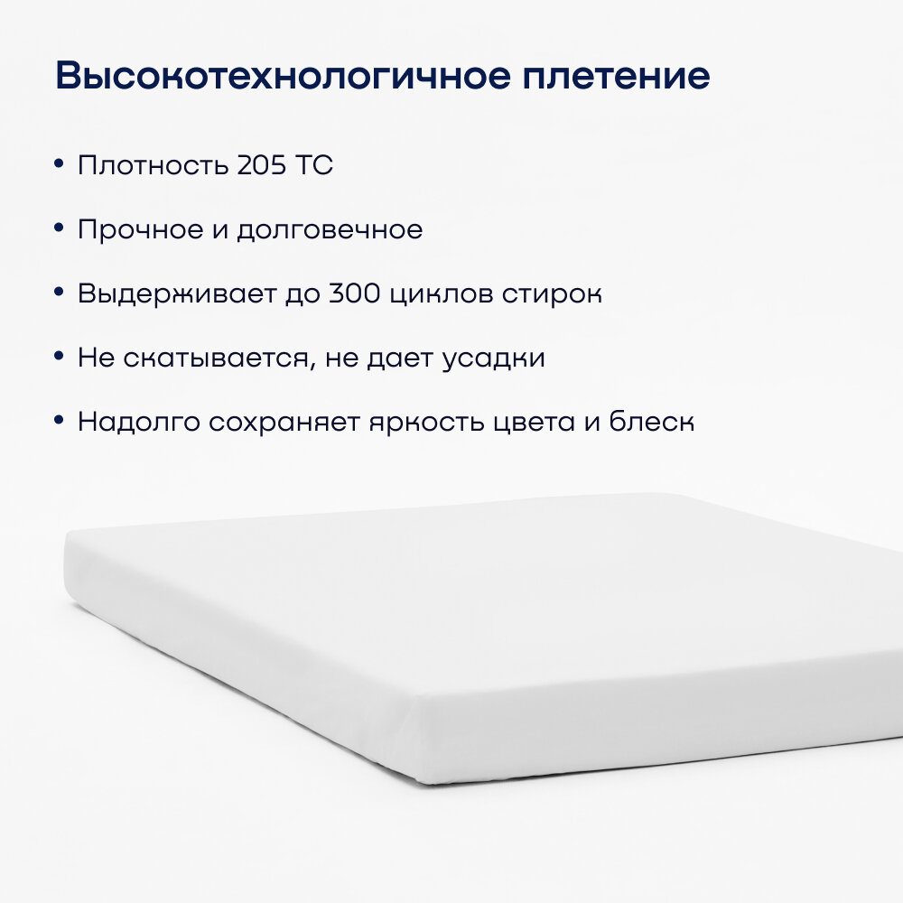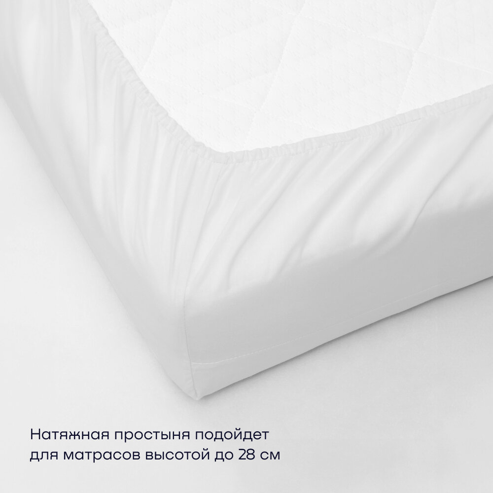 Простыня на резинке buyson BuyLive 90х200 см, хлопок (сатин) белый