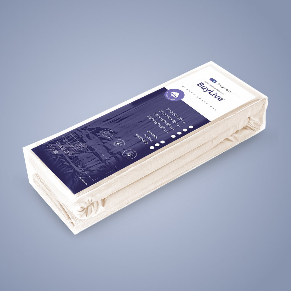 Простыня на резинке BuyLive 90х200 см, хлопок (сатин) ваниль