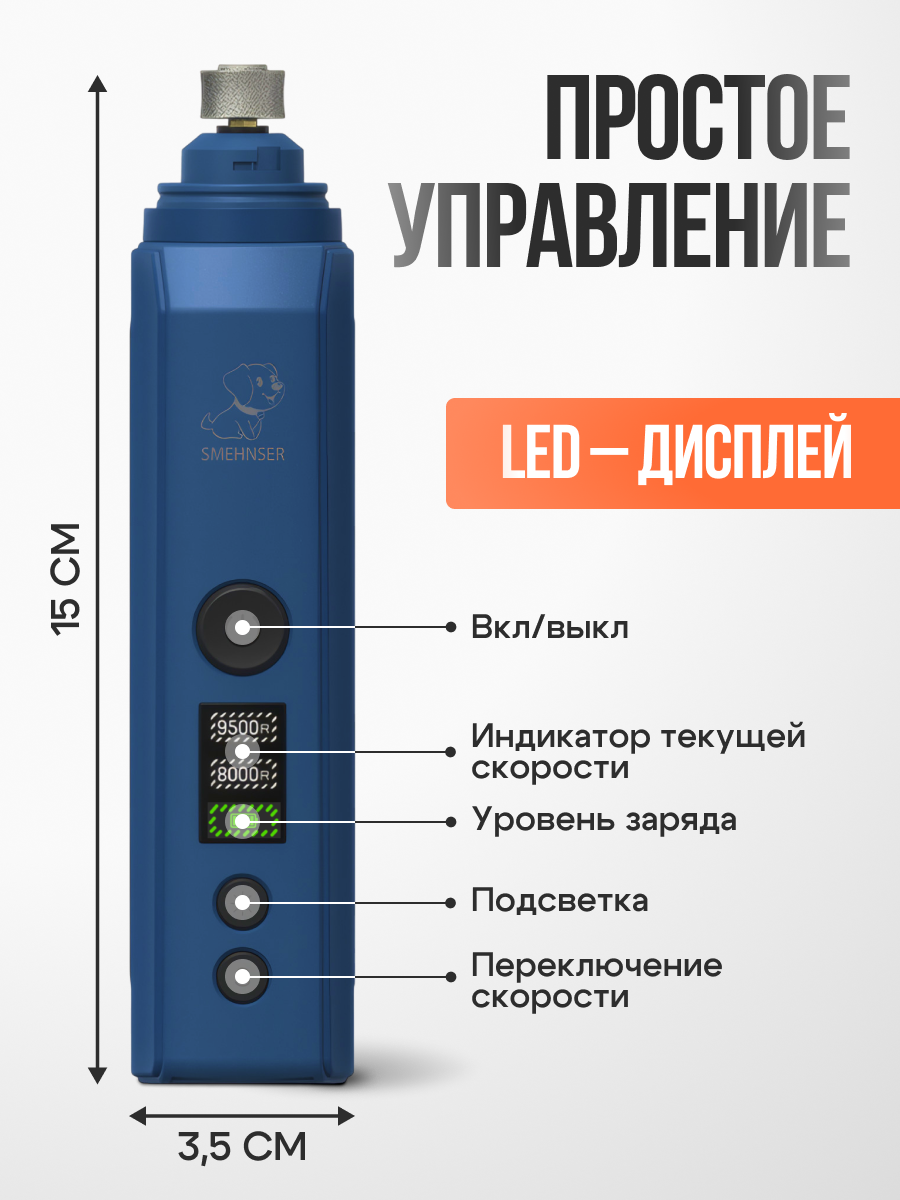 Гриндер для когтей собак и кошек, 2 скорости вращения, Темно-синий интересное: