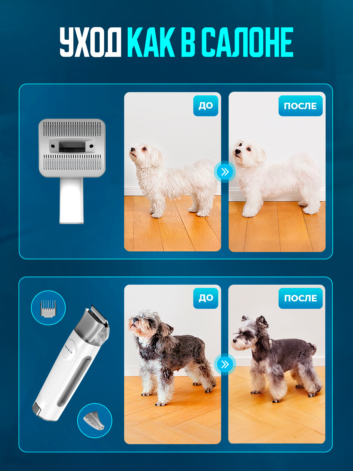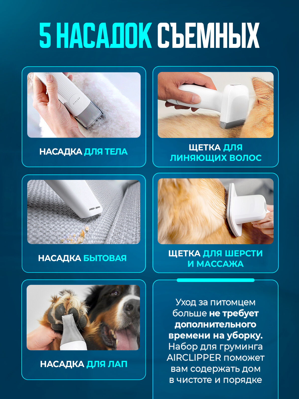 Набор для груминга кошек и собак (5 насадок для расчесывания, тримминг, стрижка) Airclipper интересное: