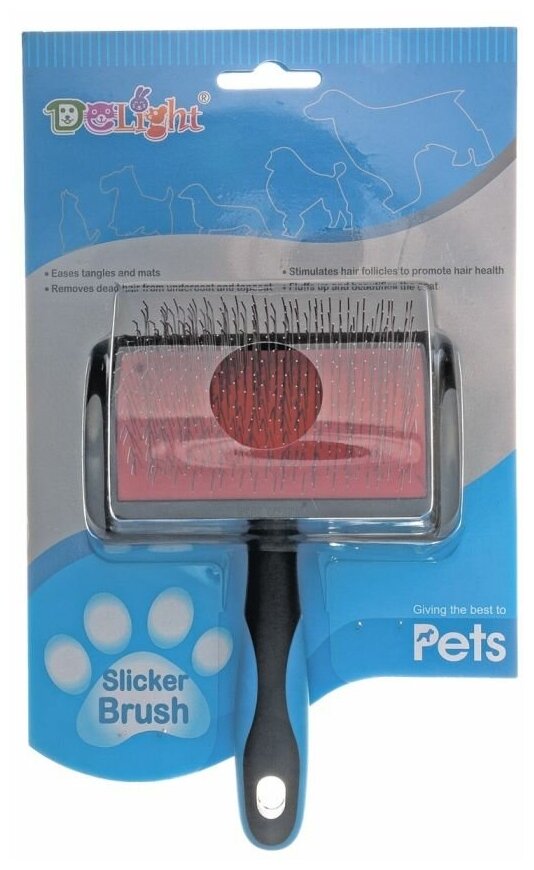Пуходерка щетка для кошек и собак DeLIGHT 36851PL профессиональная, с большой ручкой, со средним кордом, большая