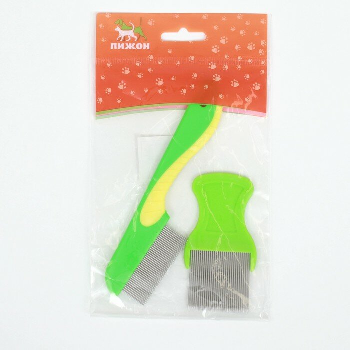 Купить Набор расчесок для животных, с длинными и короткими зубьями, зелёный
