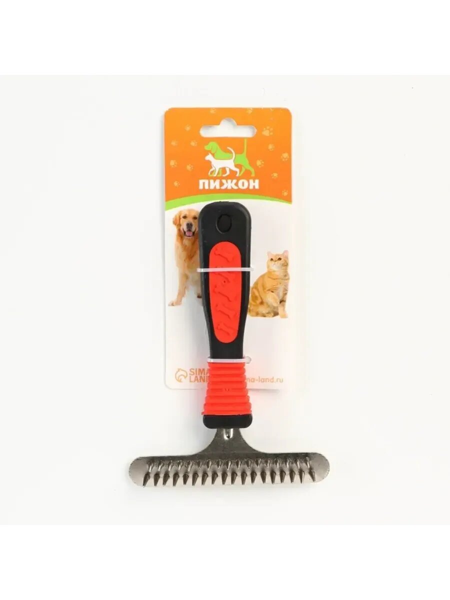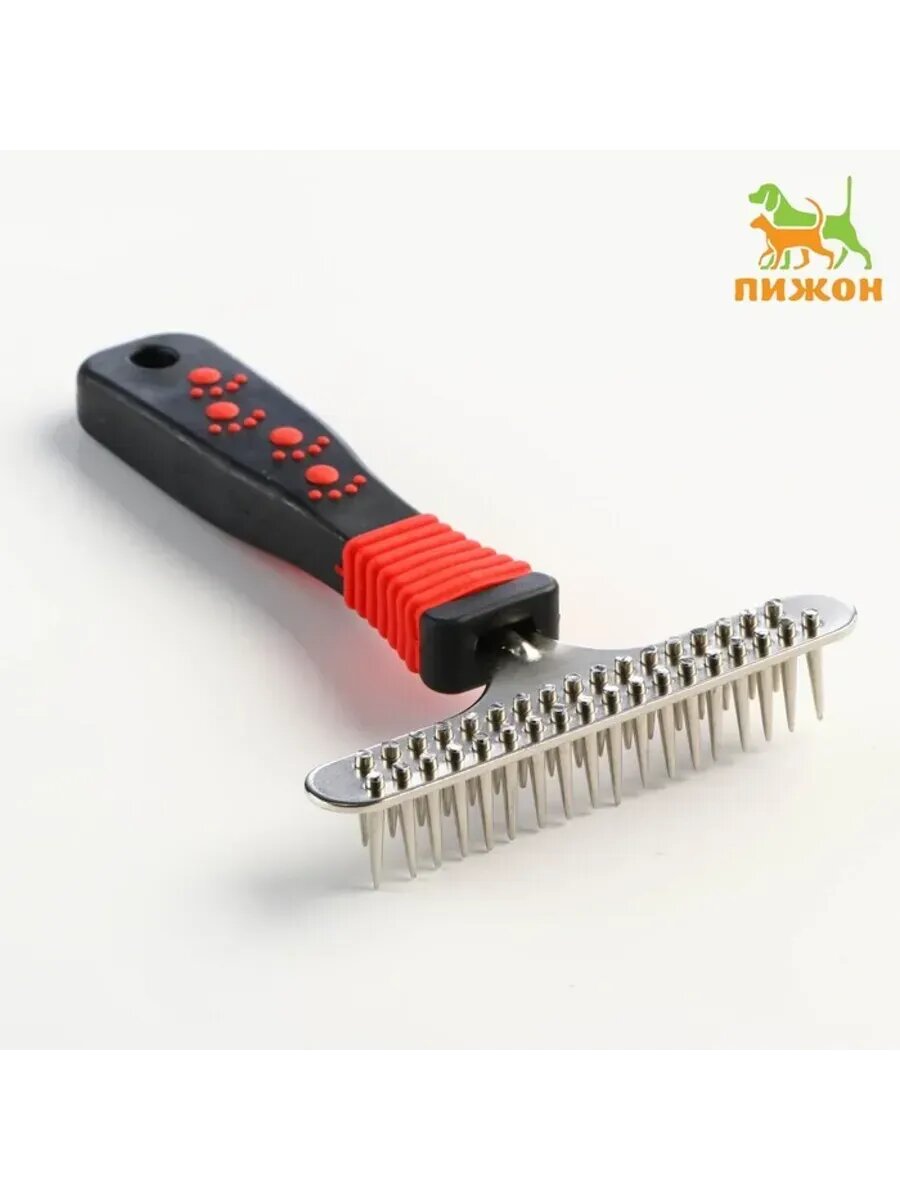 Расчёска для шерсти с вращающимися зубчиками Пижон Premium, 9,5 х 17 см, красная