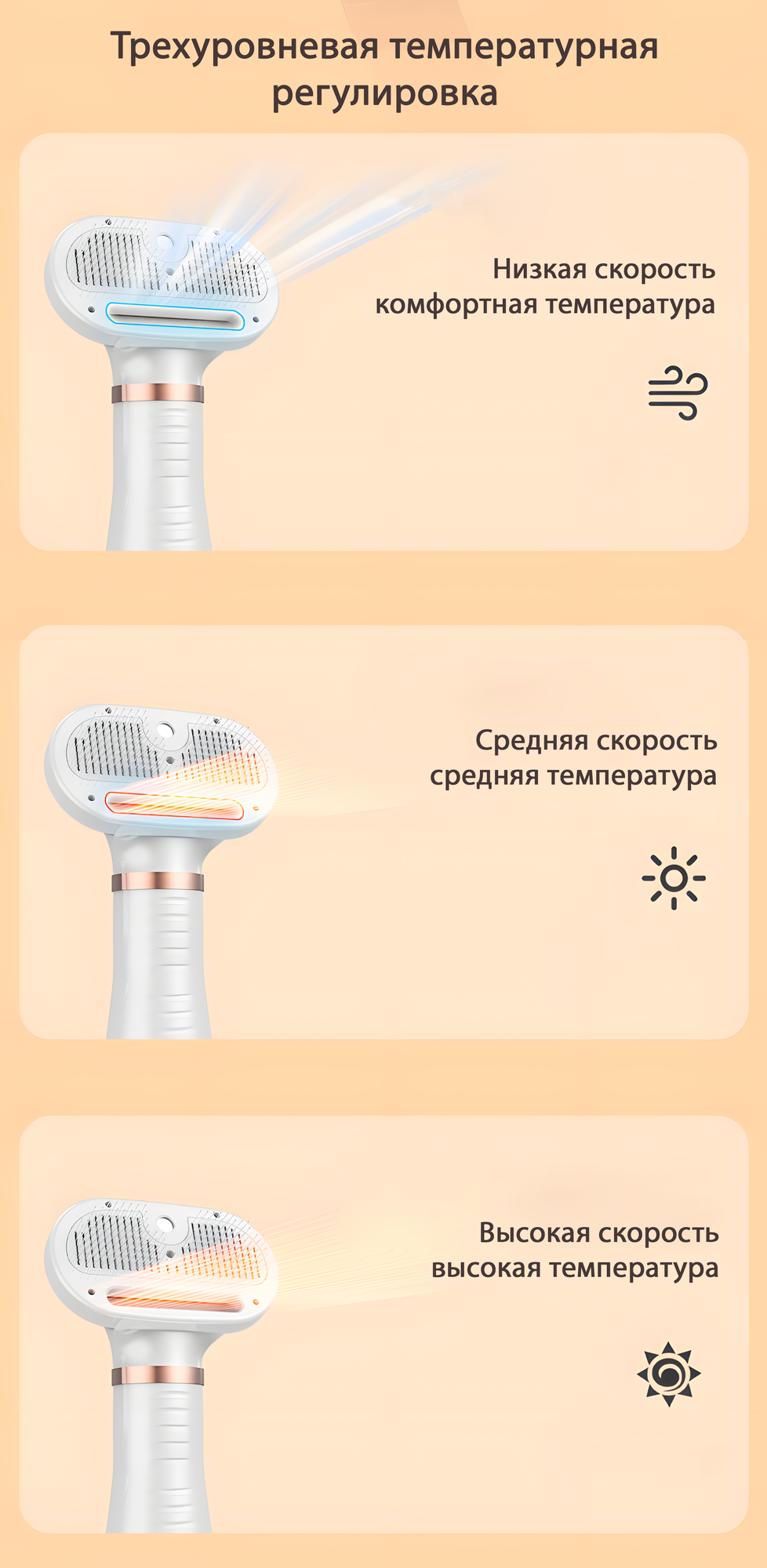 Фен-щетка для домашних животных Xinming, 3 насадки, 3 режима, длина шнура 1,5 м интересное: