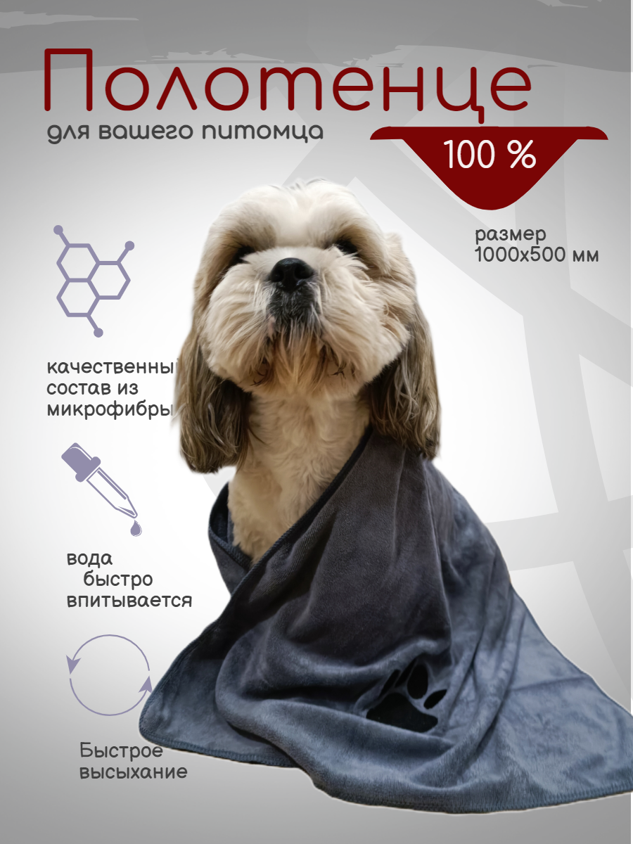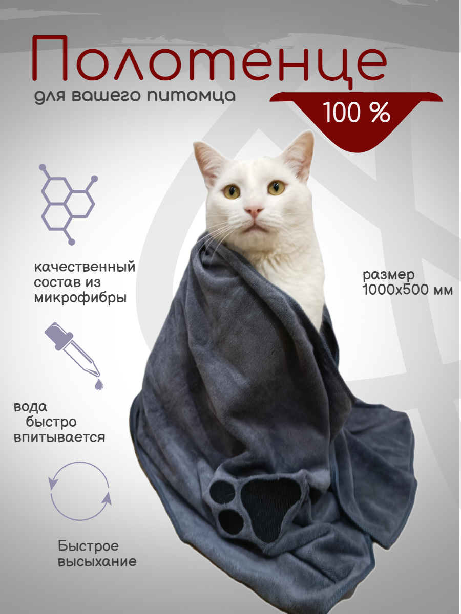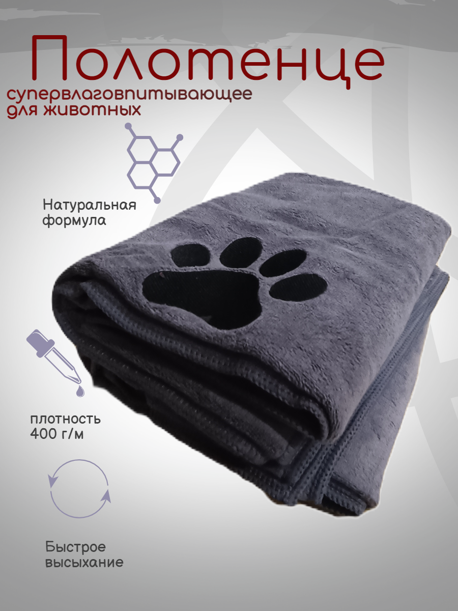 Полотенце для собак и кошек супервлаговпитывающее, серое 50x100 см, интересное: