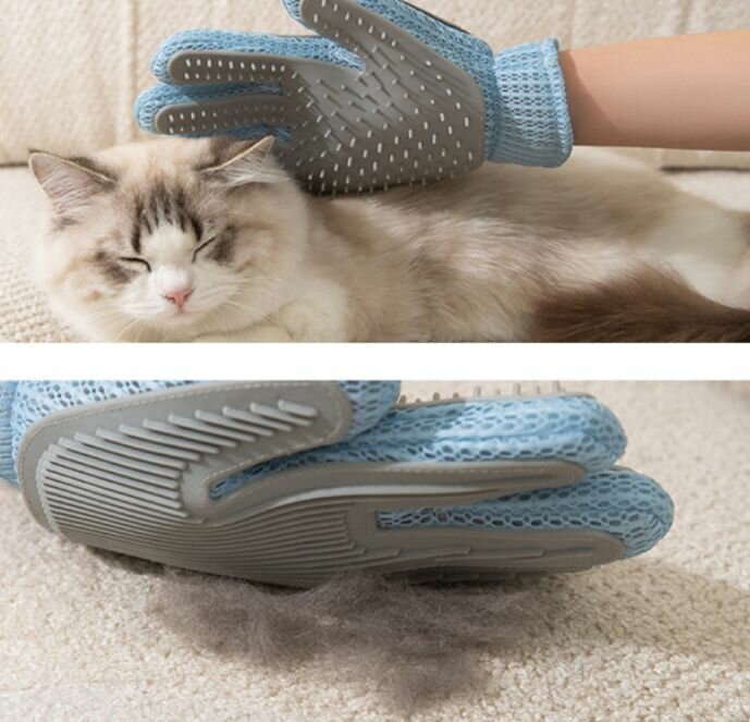 Перчатка для вычесывания, расчесывания шерсти домашних животных двухсторонняя. интересное: