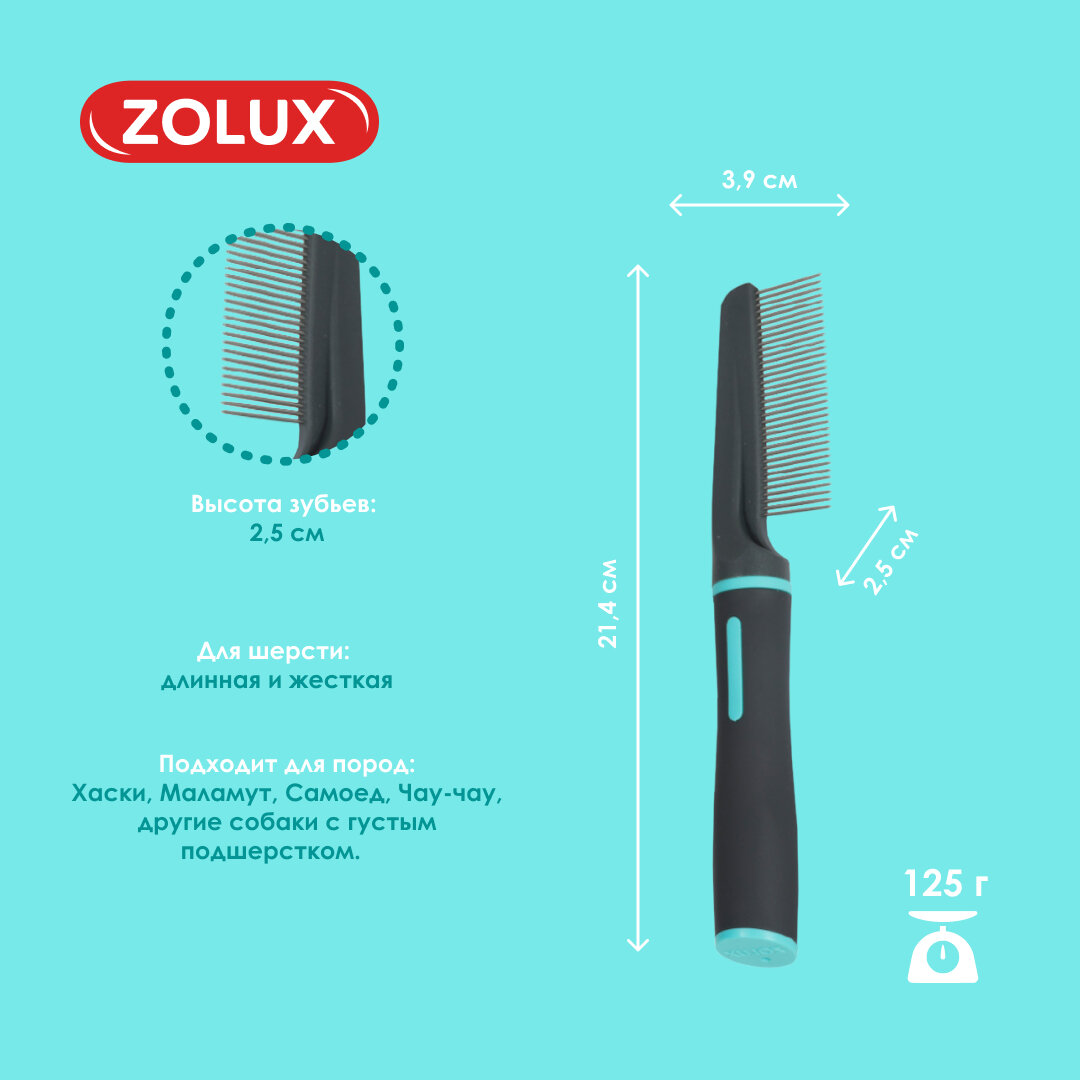 Zolux (Золюкс) Массажная расческа с металлическими зубьями Для собак большая New L