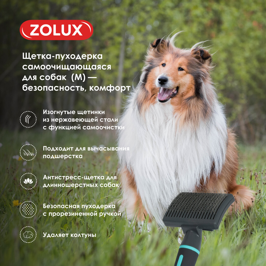 СохранитьЩетка, расческа пуходерка для собак самоочищающаяся средняя, М, Zolux интересное: