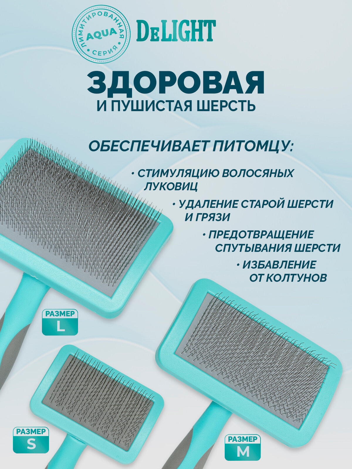 Пуходерка для кошек и собак DeLIGHT AQUA, пластиковая, с мягким кордом, большая, 36821LA интересное: