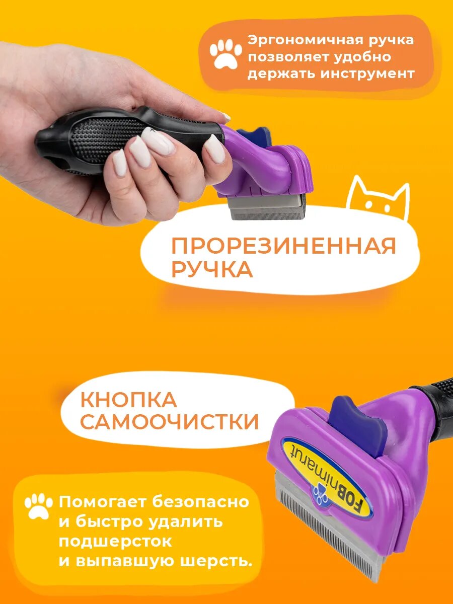 Щетка для вычесывания шерсти кошек и собак (дешеддер, пуходерка, фурминатор), чесалка для кошек плешоп