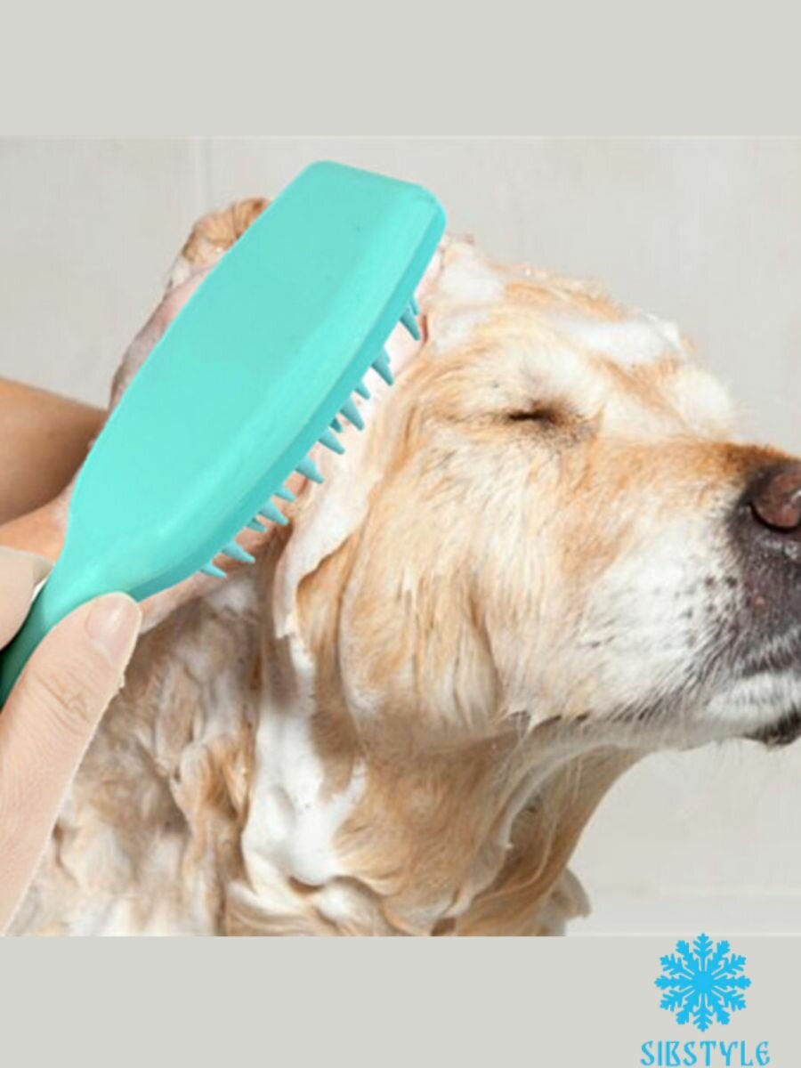 Купить Щетка с силиконовыми зубьями, расческа для вычеса шерсти, мытья собак и кошек, для груминга с массажным эффектом (бирюзовый)