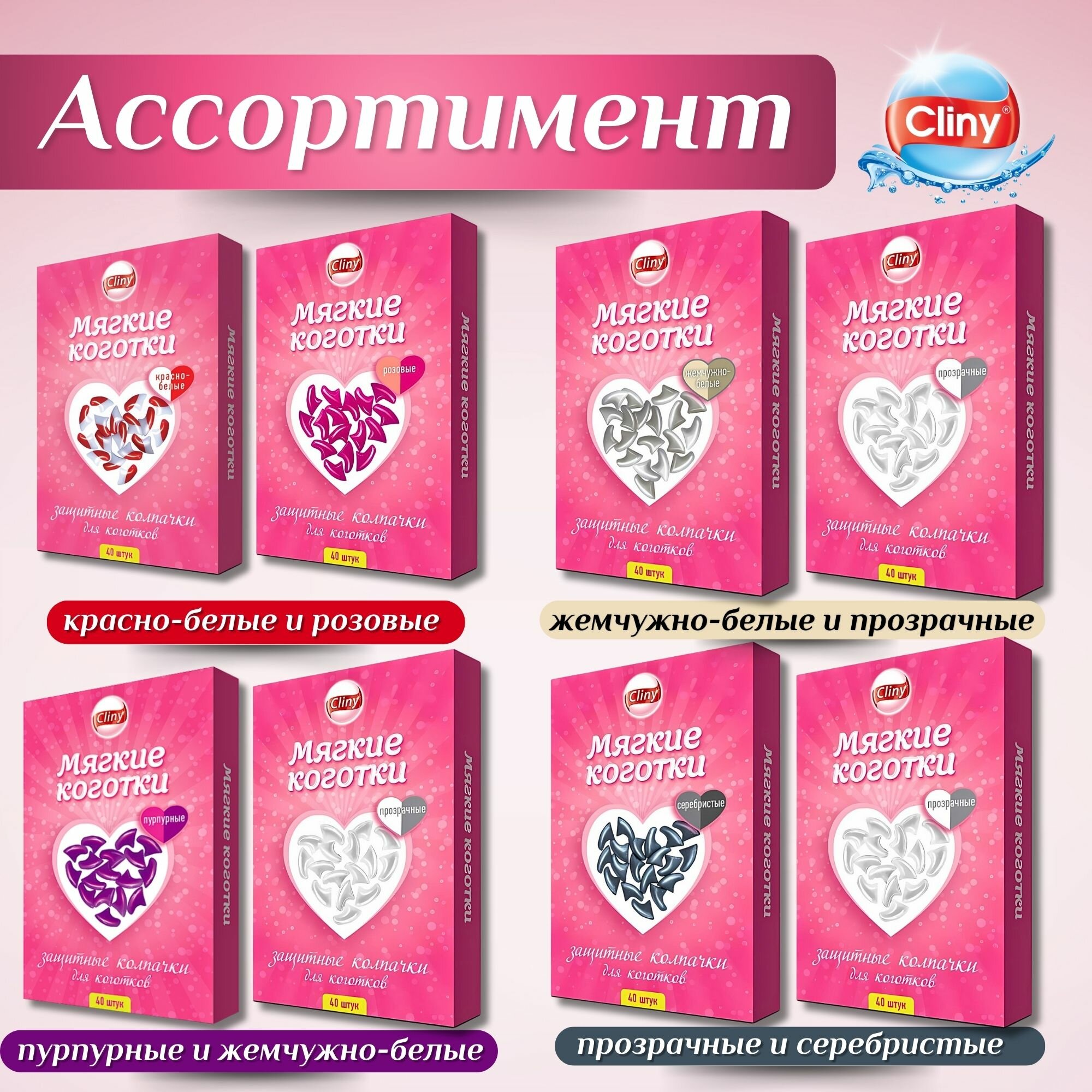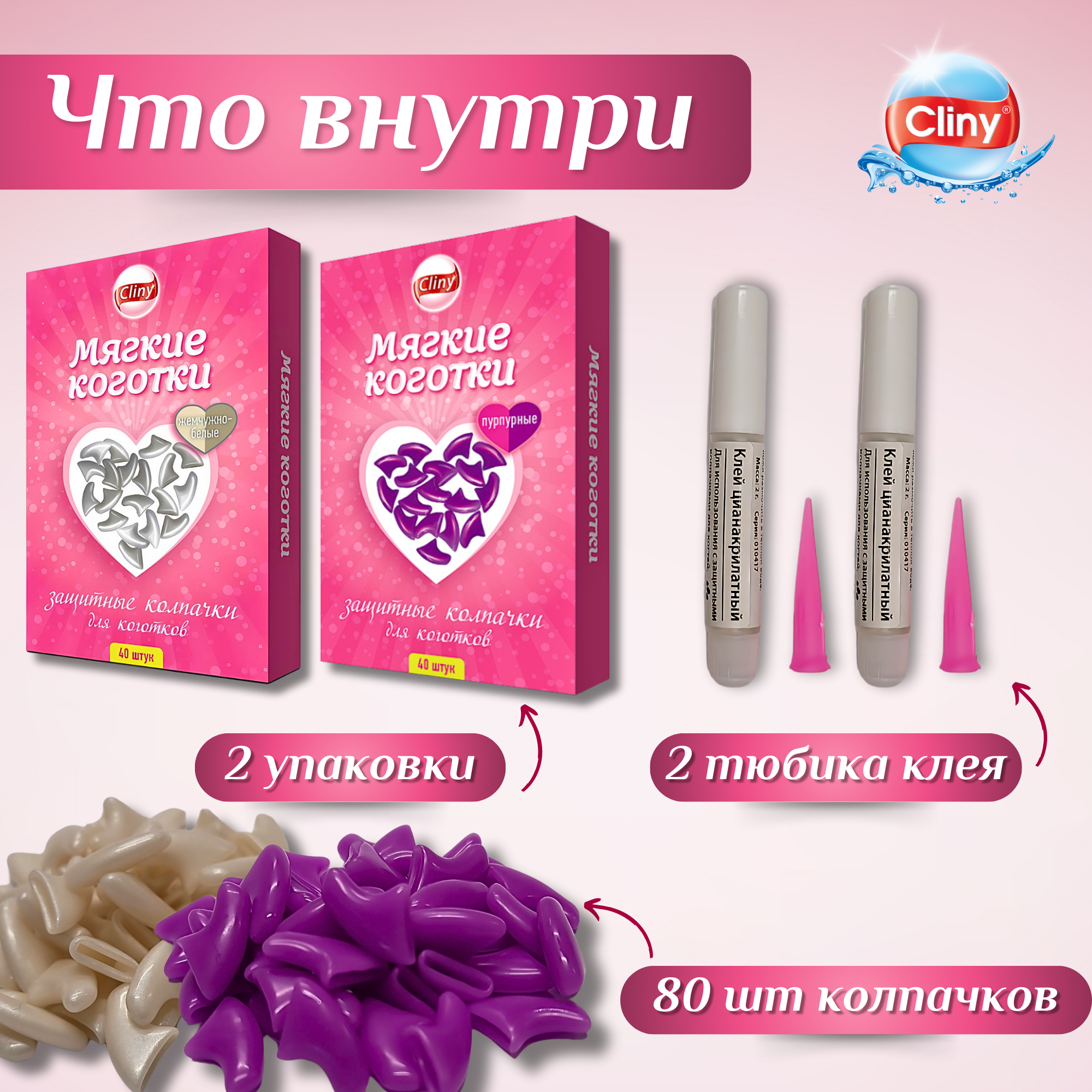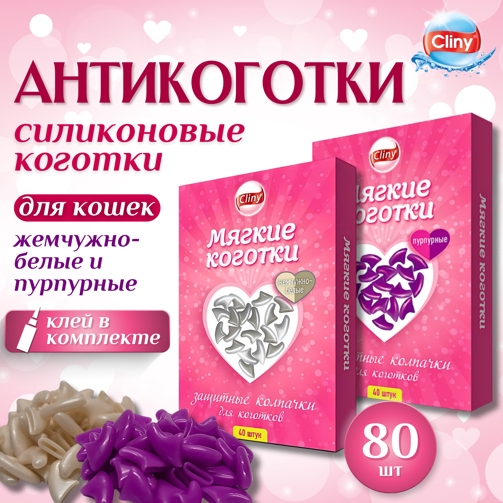 Антицарапки Cliny коготки пурпурные и жемчужно-белые, силиконовые, 80шт интересное:
