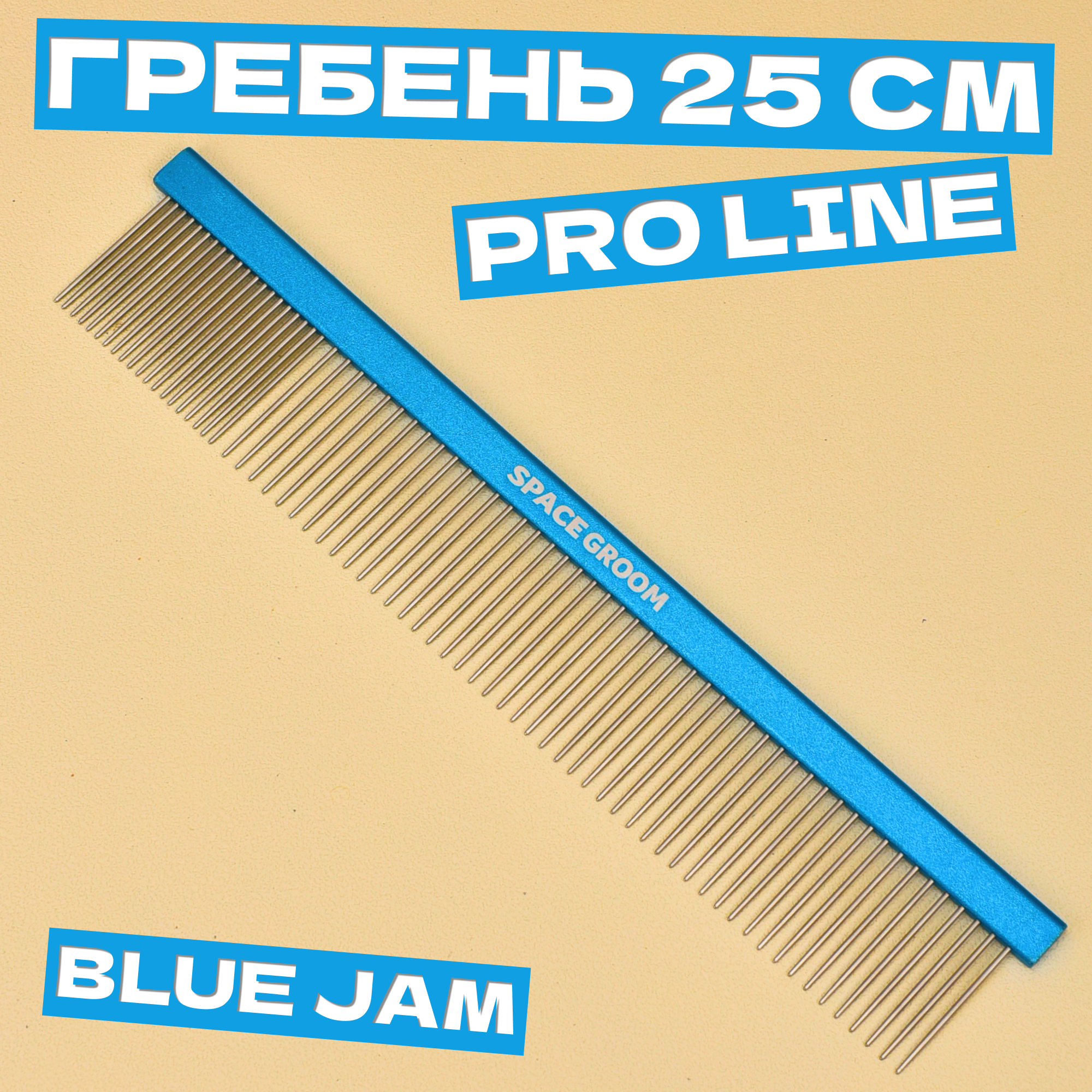 Купить Профессиональный гребень для груминга собак и кошек Blue Jam 25 см, Space Groom, длина зубьев 3,9 см
