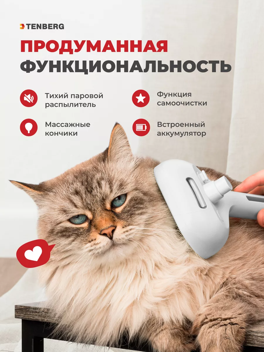 Паровая расческа для кошек и собак TENBERG Levity White / Щетка с паром для животных / NEW интересное: