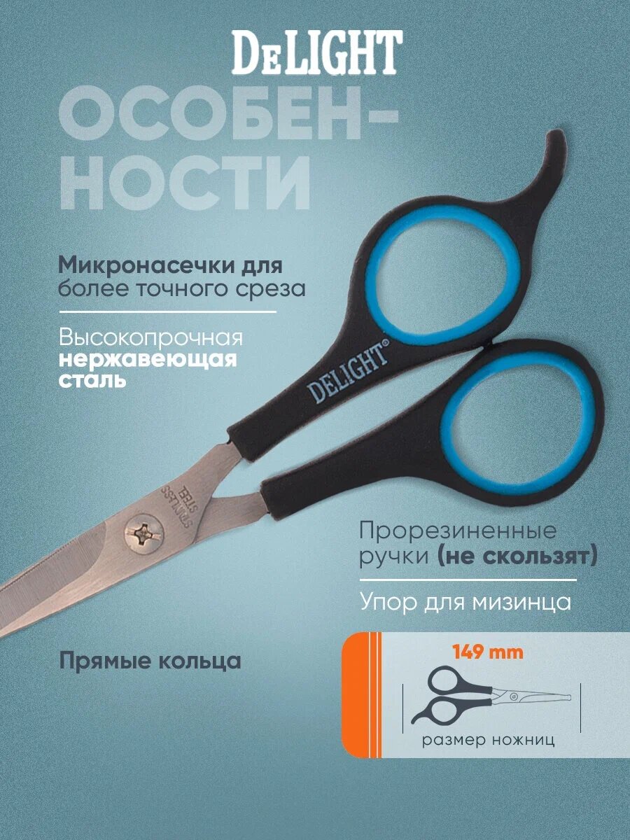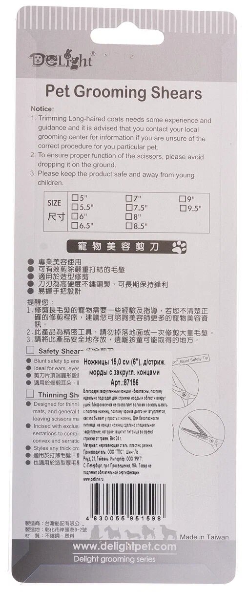 Ножницы для стрижки шерсти собак на морде, ушах, лапах DeLIGHT 87156, 15,0см (6"), лезвия 4,5см, с закругленными концами интересное: