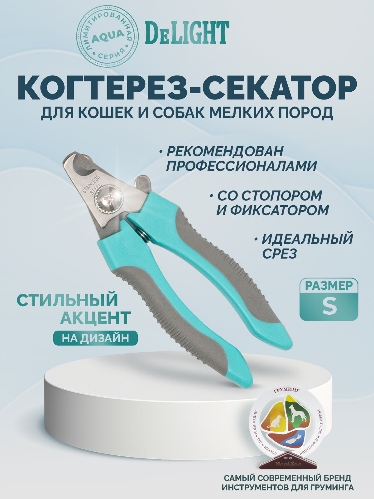 Купить Когтерез секатор для кошек и собак малых и средних пород DeLIGHT AQUA малый (S), со стопором, в блистере, 40112SA