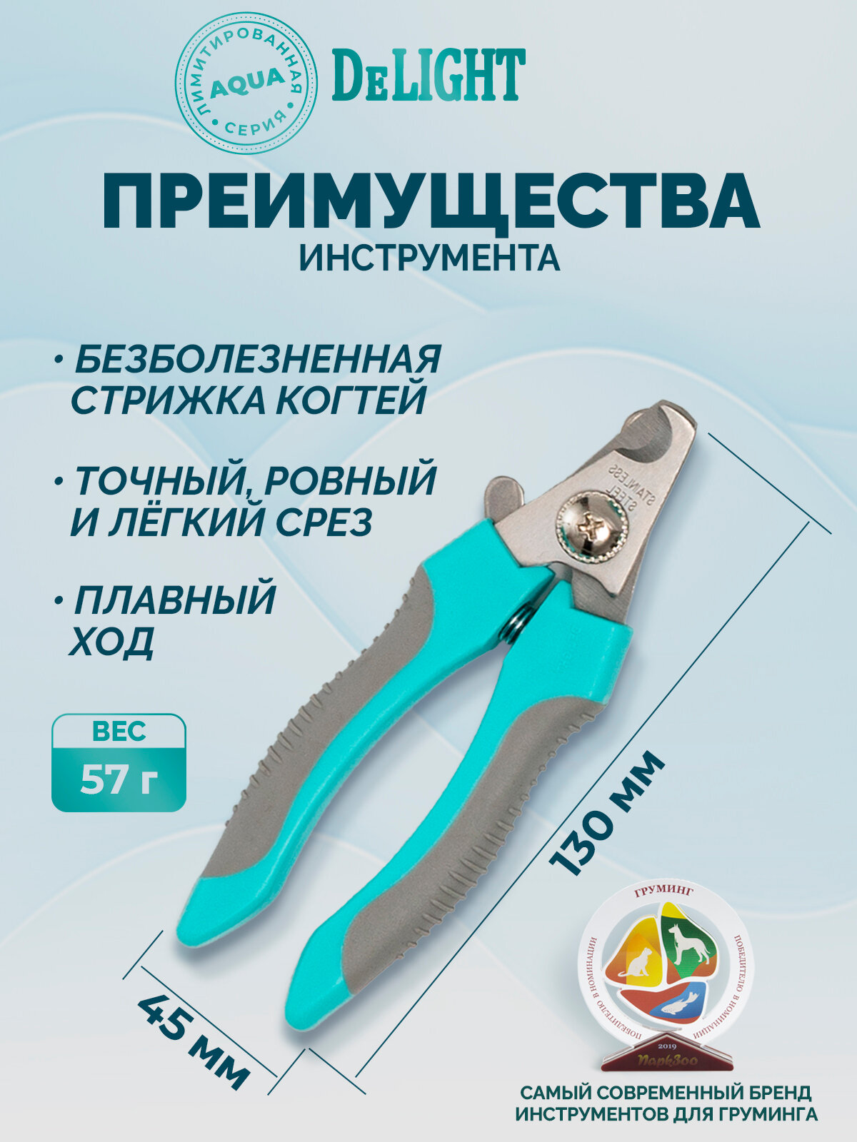 Когтерез секатор для кошек и собак малых и средних пород DeLIGHT AQUA средний (M), со стопором, в блистере, 40112MA