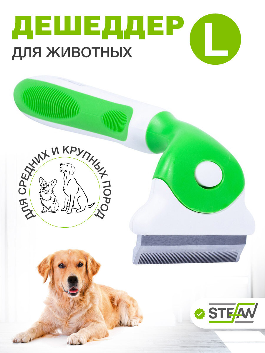 СохранитьДешеддер для животных STEFAN (Штефан), пуходерка-щетка для собак и кошек, размер L, 76мм, GDL033 интересное:
