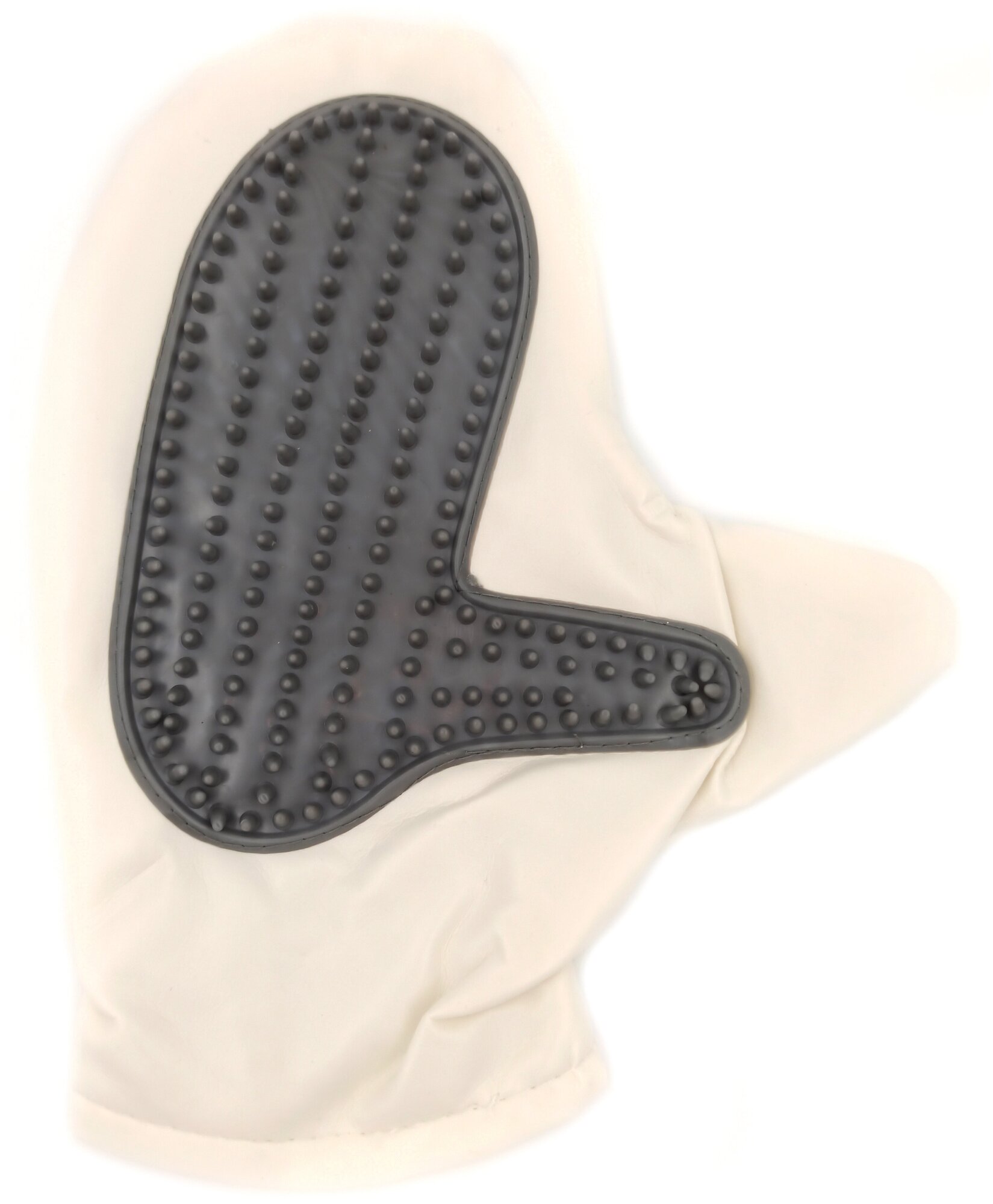 Купить Перчатка-щетка для вычесывания шерсти у кошек, собак, лошадей, кроликов / правая 160 резиновых зубцов, белая, Франция
