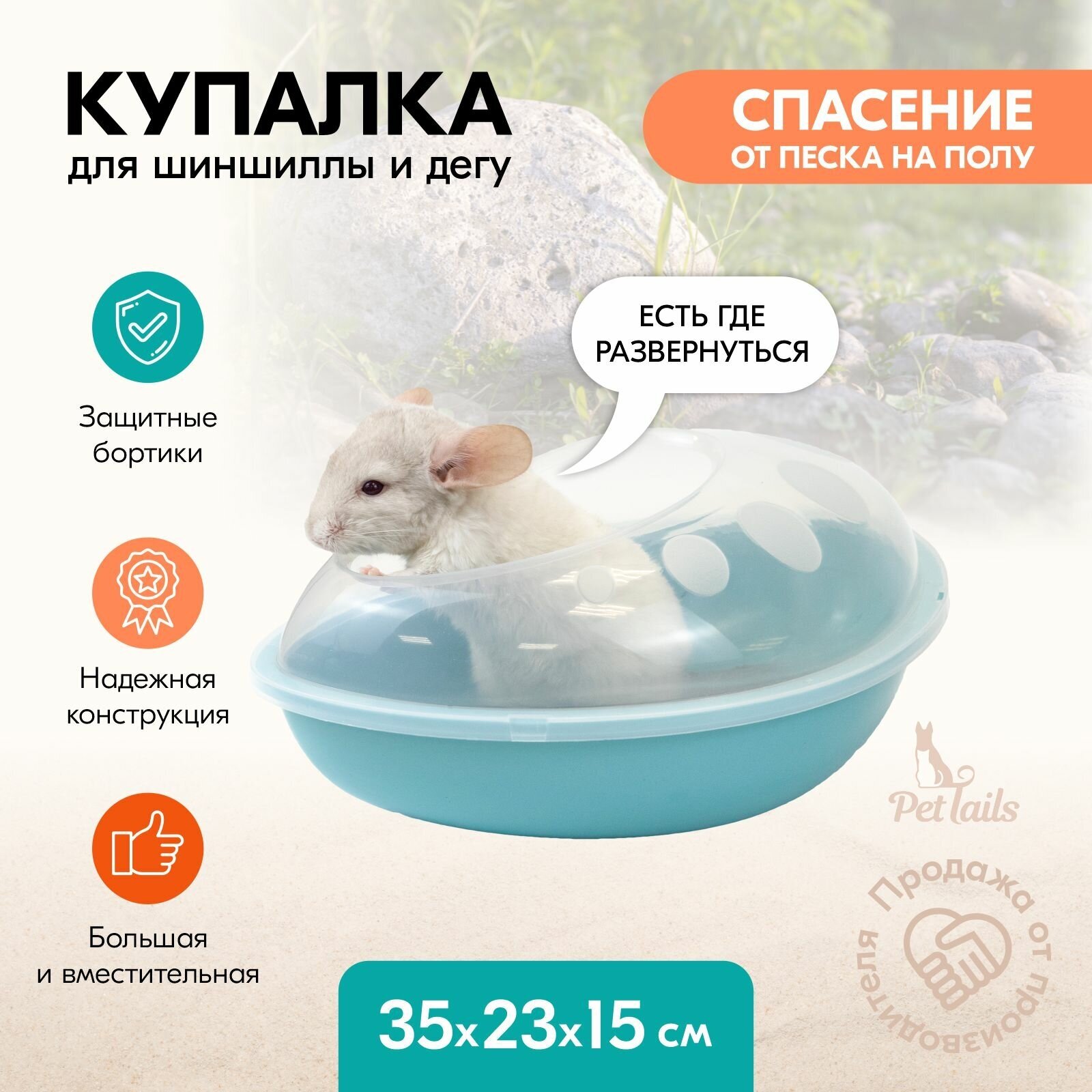 Купалка ванночка для грызунов (шиншилл) "PetTails" SANDY 35*23*h15см (пластик), бирюзовая интересное:
