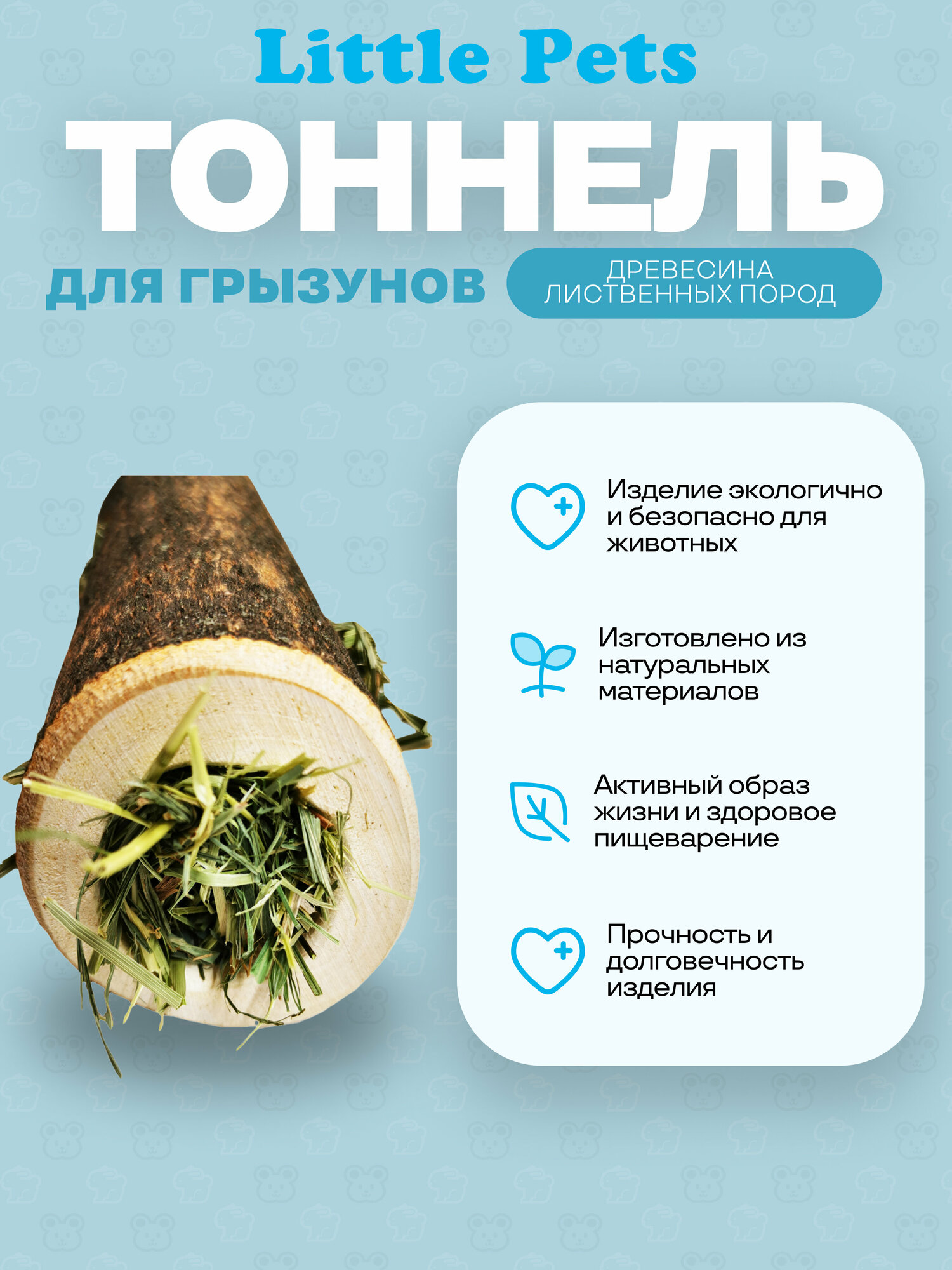 Тоннель для мелких грызунов "Little Pets" из массива липы с сеном, 17 см, внутр диаметр 36 мм интересное:
