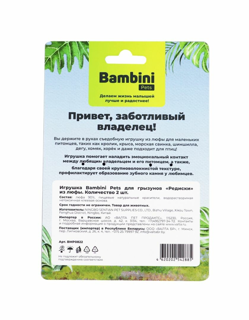 Ниже Вы можете прочитать отзывы на Игрушка Bambini "Редиски", для грызунов, жевательная, из люфы, 2 шт, в уп, ознакомится с подробными характеристиками, посмотреть интересные обзоры и фотографии на Игрушка Bambini "Редиски", для грызунов, жевательная, из люфы, 2 шт, в уп.