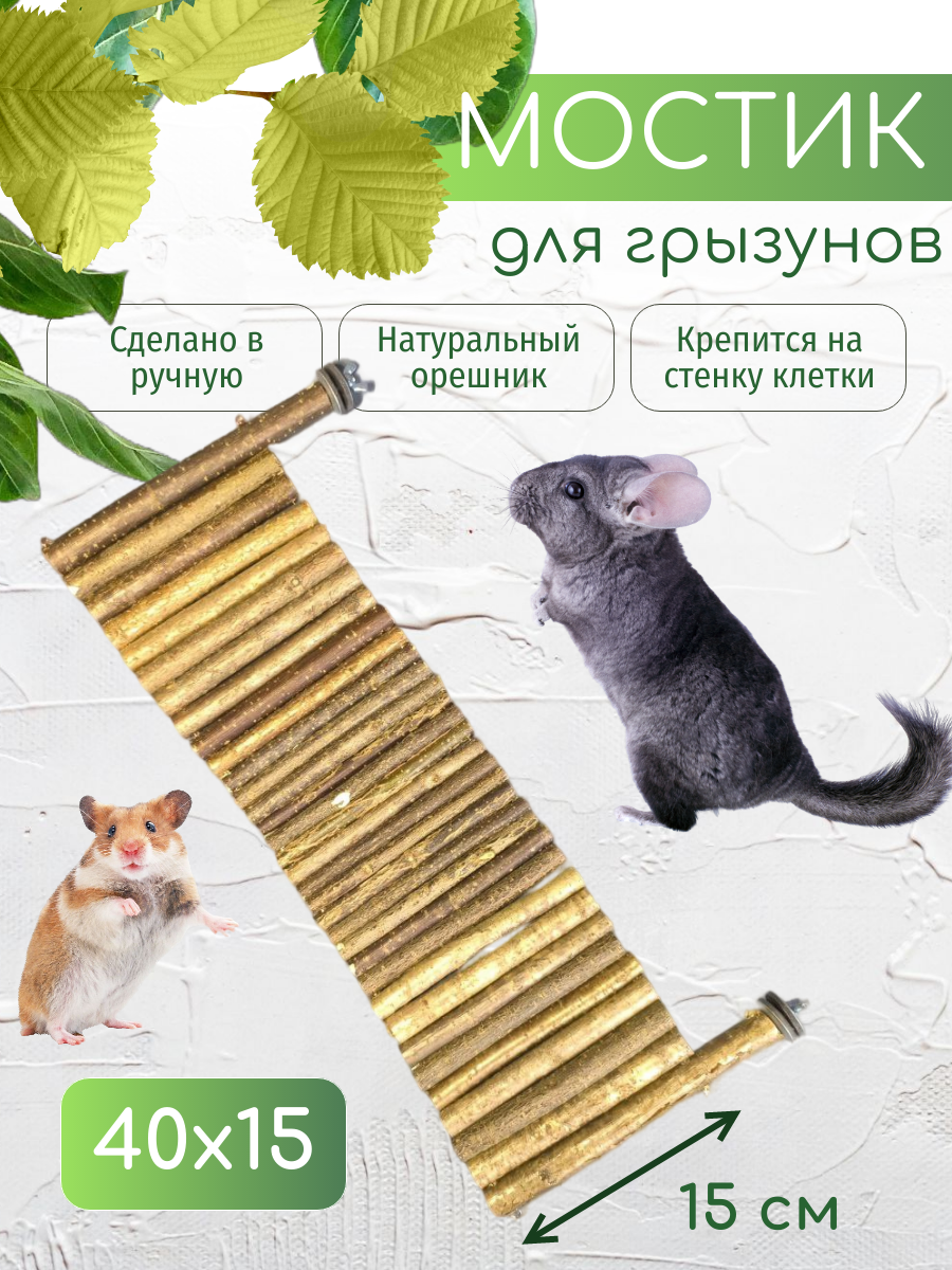 Настенный деревянный мостик на шайбах в клетку для грызунов 40х15 см интересное: