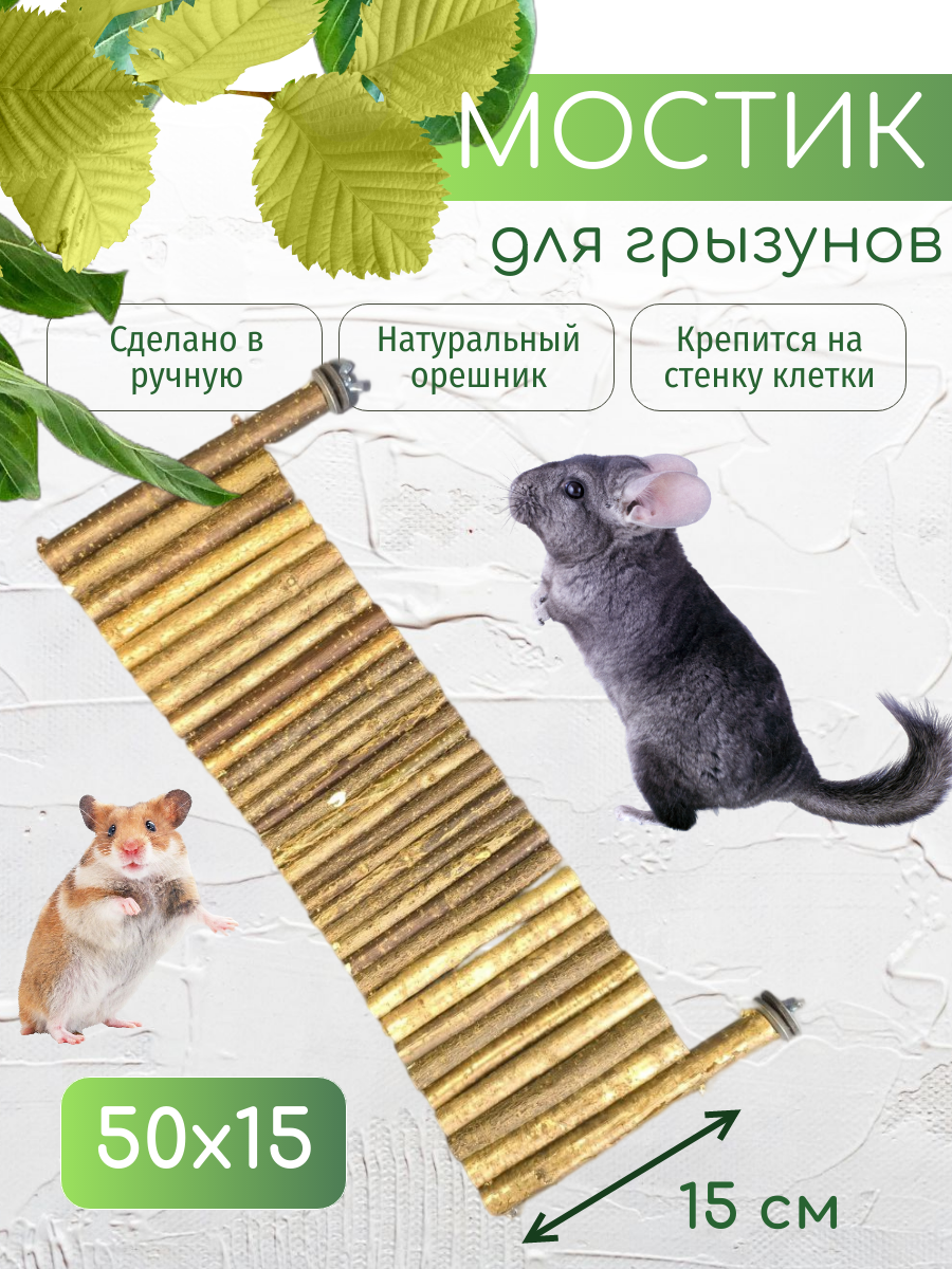 Настенный деревянный мостик на шайбах в клетку для грызунов 50х15 см интересное: